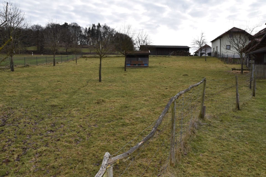 Wir bieten hier ein herrliches Baugrundstück in ruhiger Randlage an. Das Grundstück besteht aus drei Flurnummern. Eine Flurnummer ist sofort bebaubar und hat eine Fläche von rund 955 m². Es gibt keinen Bauzwang und keinen Bebauungsplan. Ein weiteres Grundstück grenzt unterhalb des Baugrundstückes an und hat eine zusätzliche Fläche von 1008 m². und dient derzeit als Weidefläche.