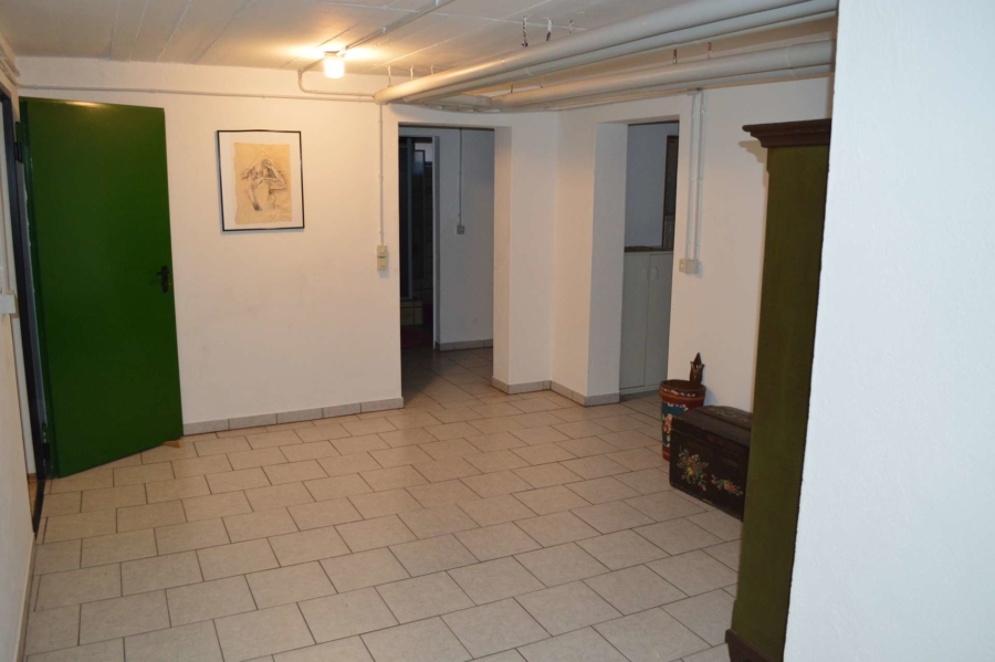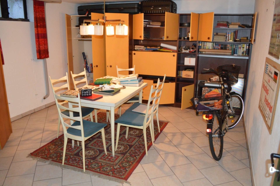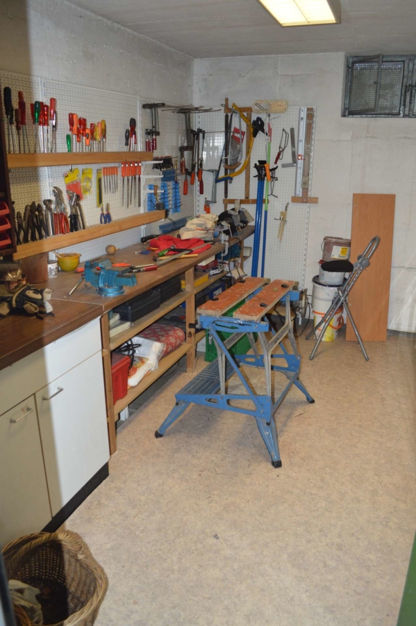 Das Haus ist komplett, inklusive der direkt angrenzenden Garage, unterkellert. Man erreicht den Keller entweder über eine rückwärtige Aussentreppe oder über eine Innentreppe. Hier findet man eine Hobbywerkstatt, einen Partyraum sowie einen weiteren Aufenthaltsraum und einen Holzlagerraum. Ebenso ist der Saunaraum mt großzügiger Dusche und eine große Waschküche untergebracht. Über einen breiten Flur erreicht man auch den Heizraum und den angrenzenden Tankraum. Da es sich bei der Heizungsanlage noch um die Erste handelt, müsste man diese demnächst aufgrund geänderter Voschriften erneuern.