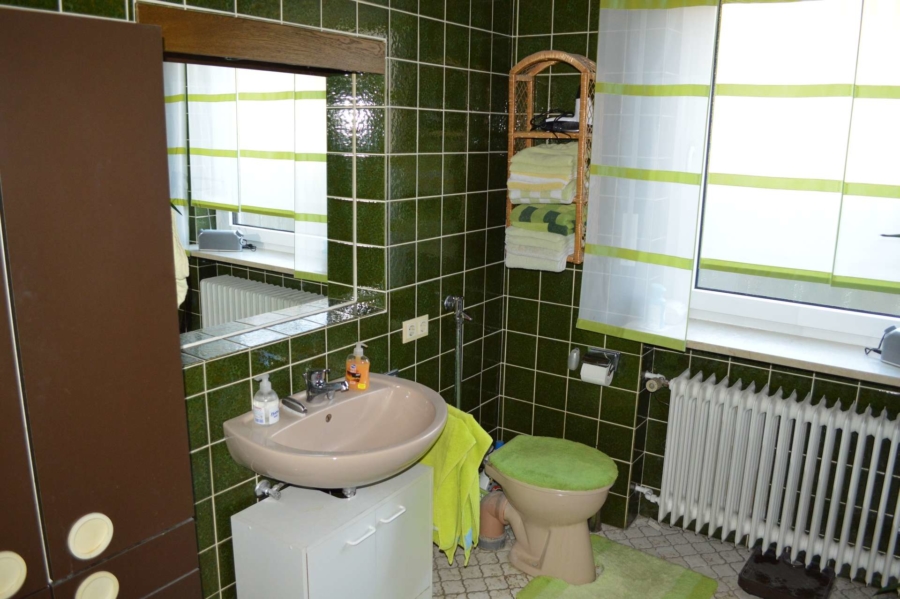 Die Badezimmer befinden sich im typischen Stil der siebziger Jahre, jedoch in absolut gepfelgtem und sauberen Zustand. Das Gebäude weist keinerlei bauliche Mängel oder Schäden auf. Es wurde vom jetzigen Besitzer erbaut und bis heute liebevoll gepflegt.