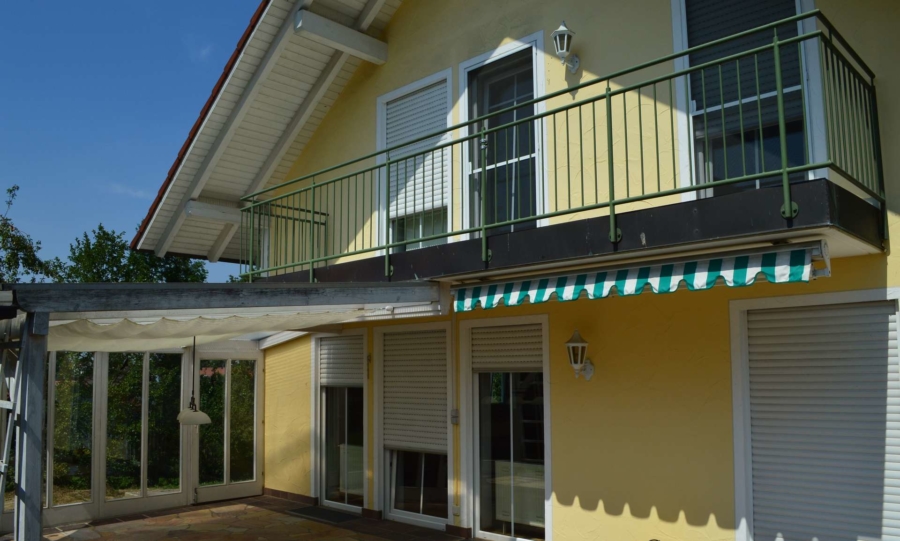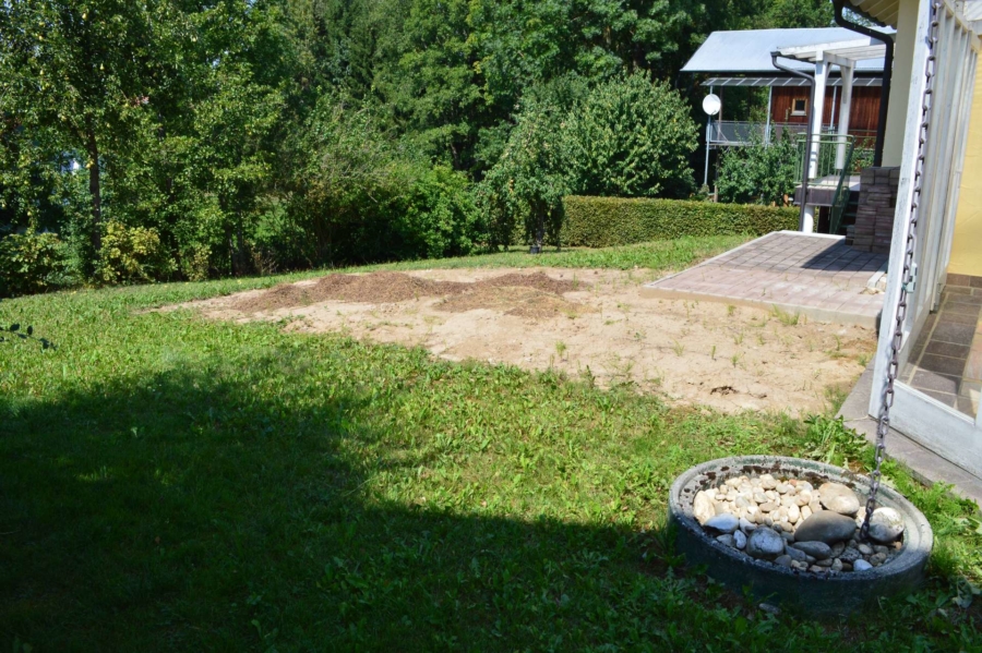 Die überdachte und wintergartenähnliche Terrasse die Sie vom Wohnzimmer und Arbeitszimmer aus erreichen lädt ebenso zum Verweilen ein. Durch die Größe des Gartens haben Sie hier natürlich auch noch viele Möglichkeiten Ihre Aktivitäten draußen zu genießen und zu verweilen. Hier fühlt sich Mensch und Haustier wohl.