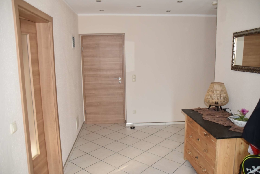 In den letzten Jahren wurde das Haus umfangreich renoviert und auf höchsten Wohlfühlstandard gebracht. Es wurden alle Bäder im Haus saniert, das Badezimmer im Erdgeschoss bietet neben einer Eckbadewanne und einer bodengleichen großen Dusche mit Echtglaswand auch ein modernes Dusch-WC. Boden und Wände wurden mit Fliesen im zeitlosen Design modern gefliest. Eine Fussbodenheizung sorgt hier für angenehme Wärme. Darüberhinaus wurden in vielen Zimmern hochwertige neue Bodenbeläge verlegt. Der großzügige Wohn-/ Essbereich mit einer hochmodernen Einbauküche ist offen gehalten. Ein toller Kachelofen sorgt bei kalter Witterung für wohlige Wärme. Das Haus ist hell und lichtdurchflutet. Über den breiten Flur erreichen Sie drei weitere Zimmer.