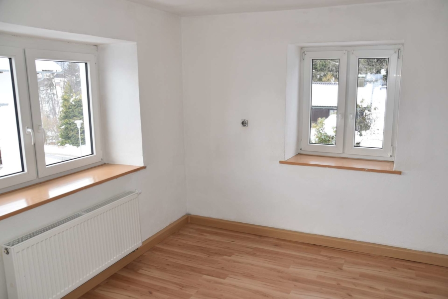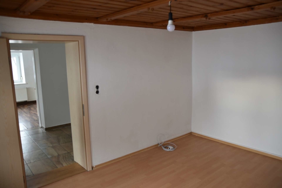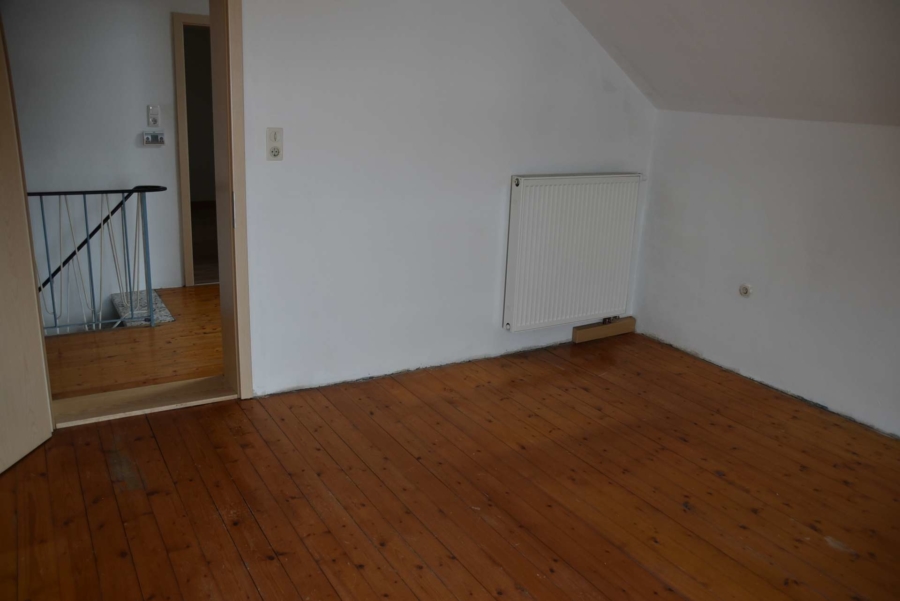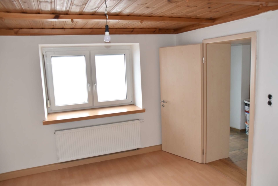 Ein weiteres großes Zimmer steht im Obergeschoss noch als Ausbaureserve zur Verfügung. Es wurden bereits neue Fenster eingebaut. Es fehlt lediglich der Innenausbau, der mit wenig Aufwand fertiggestellt werden kann.