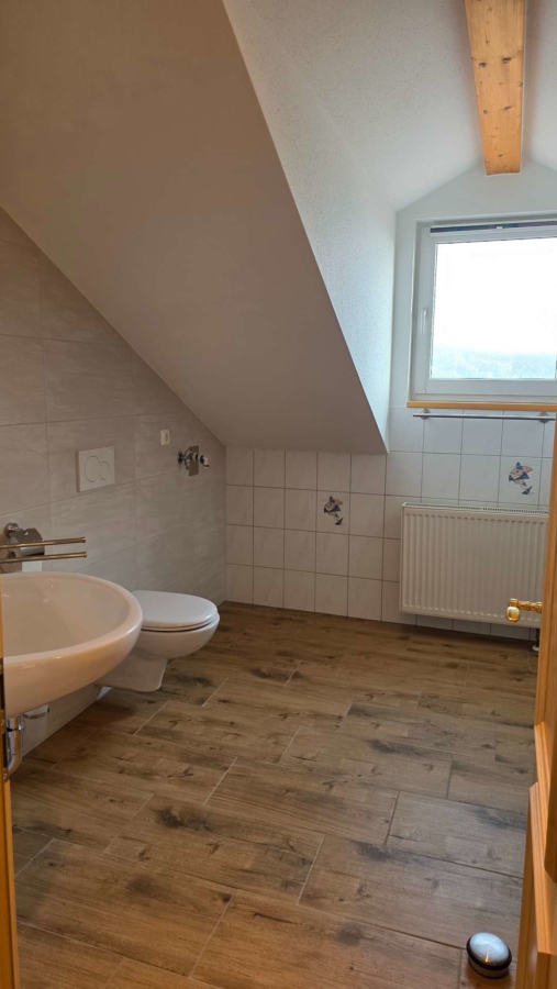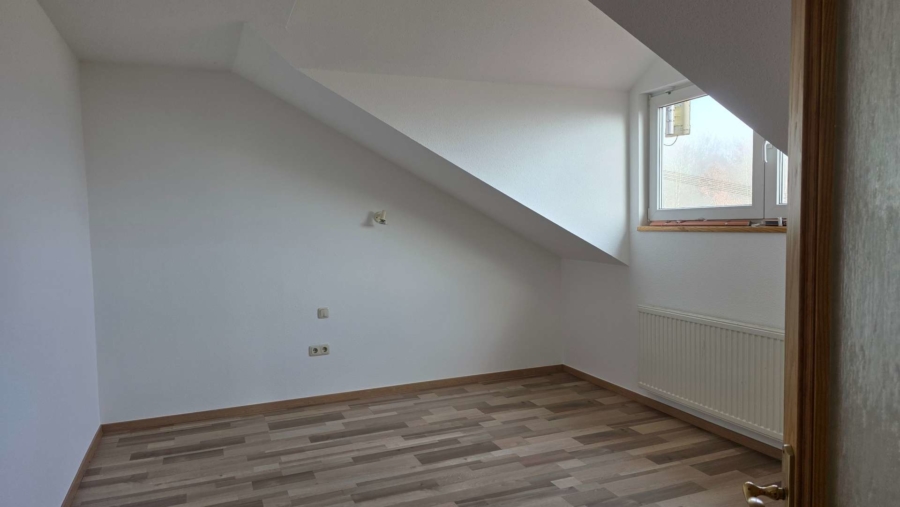 Das Dachgeschoss ist über die Holztreppe vom Eingang aus erreichbar und derzeit mit der Galerie zum Erdgeschoss verbunden. Dank einer abschließbaren Tür lässt es sich jedoch mühelos abtrennen und eigenständig vermieten. Derzeit ist ein Zimmer ausgebaut, ergänzt durch eine schöne Küche mit Einbauküche sowie ein im Jahr 2024 neu und modern gestaltetes Badezimmer mit Dusche und WC. Der eigene Balkon bietet eine wahnsinnig schöne Aussicht ins Grüne. Zwei weitere Räume warten darauf, nach Ihren Wünschen ausgebaut zu werden und eröffnen somit spannende Gestaltungsmöglichkeiten.
