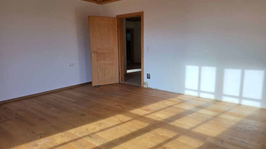Die Zufahrt und der Eingangsbereich sind gepflastert, eine Doppelgarage sowie zwei separate Stellplätze sorgen für ausreichend Parkmöglichkeiten. Großzügige Balkon- und Terrassenflächen laden zum Entspannen ein. Die massiven Holzbalkone werten das Haus optisch auf. Ein ebenerdiger Eingang führt in das Erdgeschoss und ebenfalls gelangen Sie über eine stilvolle Holztreppe in die separaten Wohnungen im Dach- und Untergeschoss.