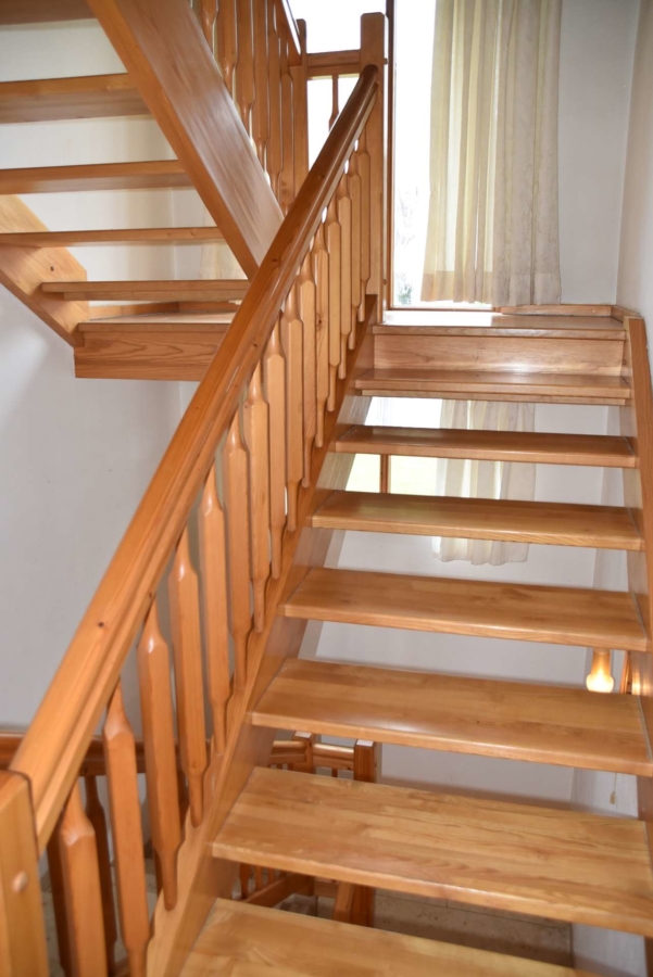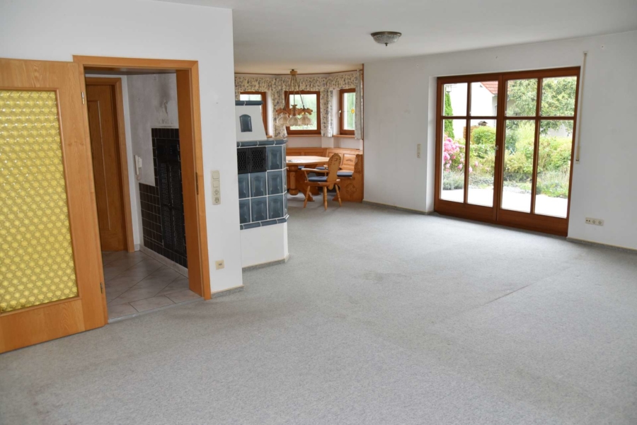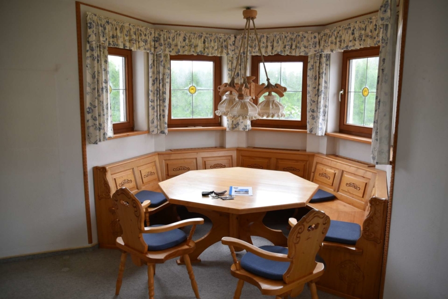 Es wurden Isolierglasfenster aus Holz mit Sprossen verbaut. An fast allen Fenstern sind Rollläden. Beheizt wird das Haus mit einer Öl-Zentralheizung. Im Flur und im Badezimmer gibt es eine Fußbodenheizung. Im Wohn-/Essbereich steht zusätzlich ein Kachelofen zur Verfügung. Ebenso gibt es einen tollen Erker mit einer maßgefertigten Sitzgruppe aus Massivholz.