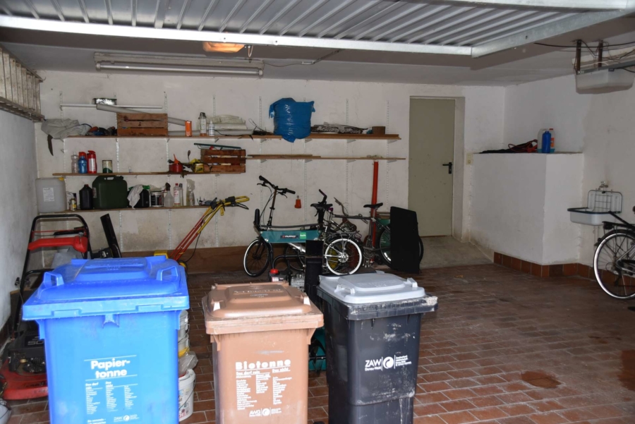 Das Gebäude wurde als Einfamilienhaus gebaut, kann jedoch auch als Mehrfamiliehaus genutzt werden. Durch die leichte Hanglage des Grundstücks betritt man das Haus ebenerdig durch den Keller. Hier ist eine abgeschlossene Wohnung mit gut 80 m² Wohnfläche und drei Zimmern untergebracht. Zur Gartenseite kommt man direkt auf die Terrasse. Diese Wohnung ist im Moment vermietet, der Rest des Hauses steht leer.