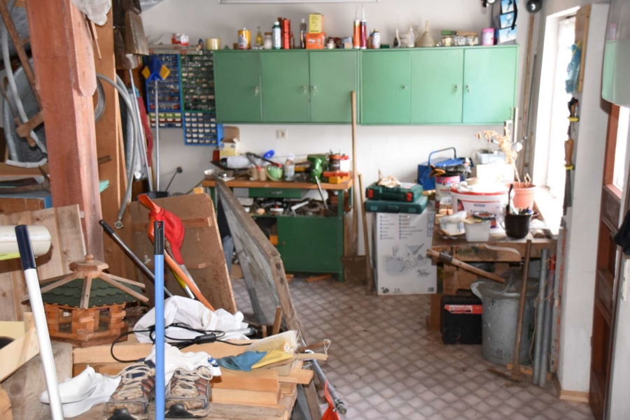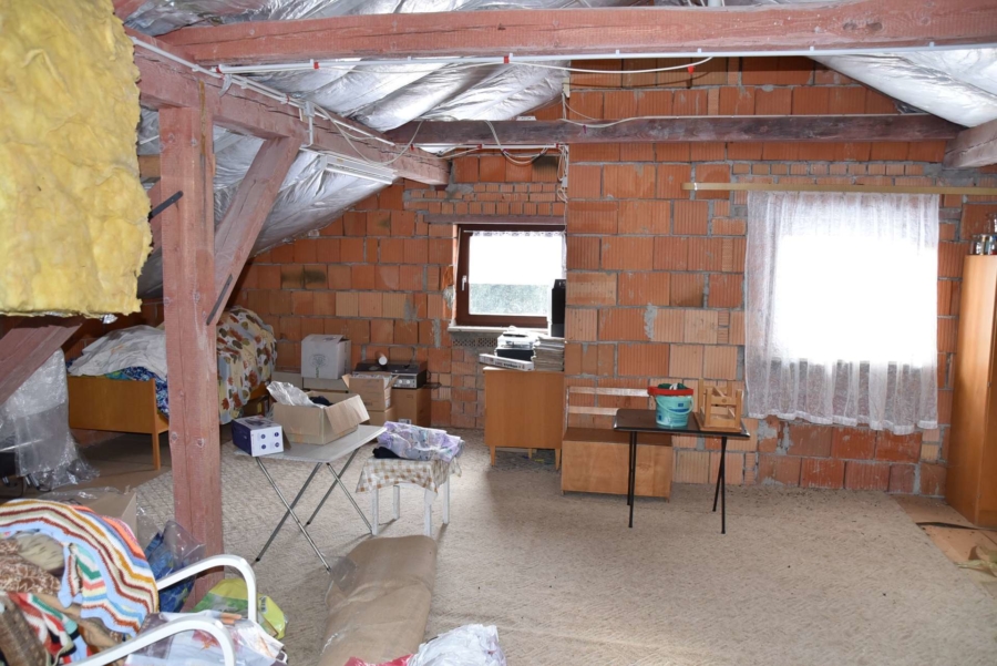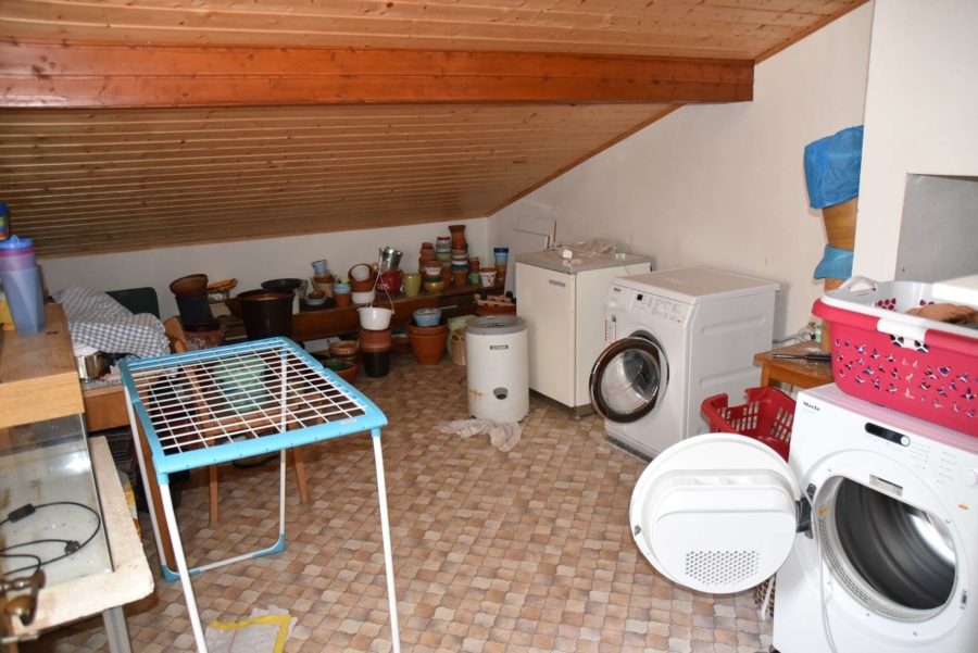 Auf der selben Etage könnte man über der großen Doppelgarage noch eine weitere Wohnung ausbauen. Sämtliche Anschlüsse wären bereits vorhanden. Derzeit wird dieser Gebäudeteil als Bastlerwerkstatt und Waschraum genutzt. Ein separater Zugang wäre hier ebenfalls vorhanden. Das Obergeschoß dient momentan als Spreicherraum. Durch seine Höhe und Größe könnte hier eine vierte Wohnung oder weitere Zimmer für eine große Familie entstehen.