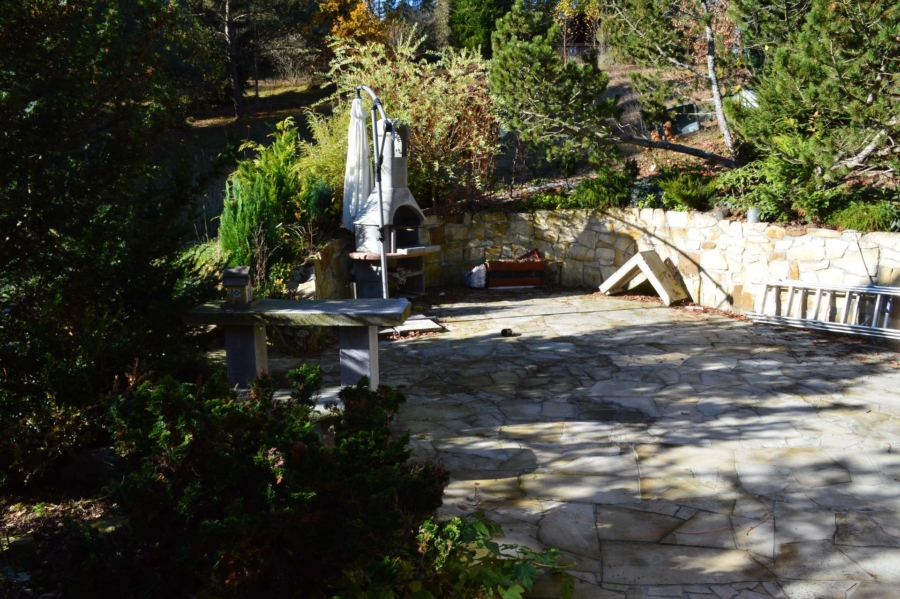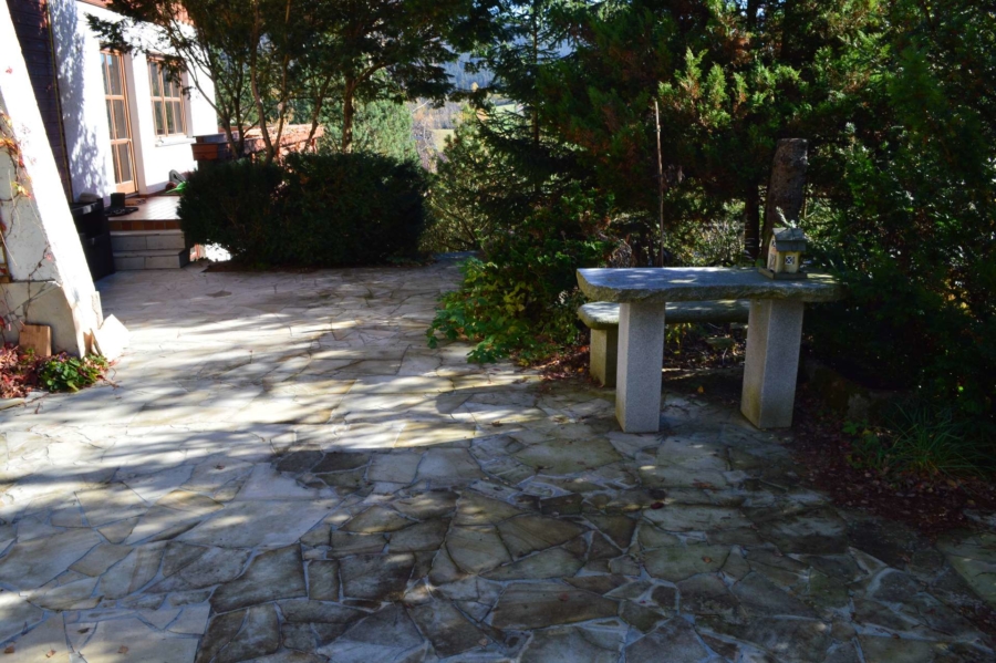 Das große 3400 m² große Südhanggrundstück bietet ausreichend Platz für alles was draußen Spaß macht. Hier könnte man alle möglichen Tiere problemlos unterbringen oder auch nur den Garten genießen. Ein großes Gartenhaus im oberen Grundstücksbereich bietet zusätzlichen Platz für gemütliche Stunden und super toller Fernsicht von der Sonnenterrasse aus. Ein großes Gewächshaus bietet ebenfalls aureichend Platz für alles was gesund ist und schmeckt.