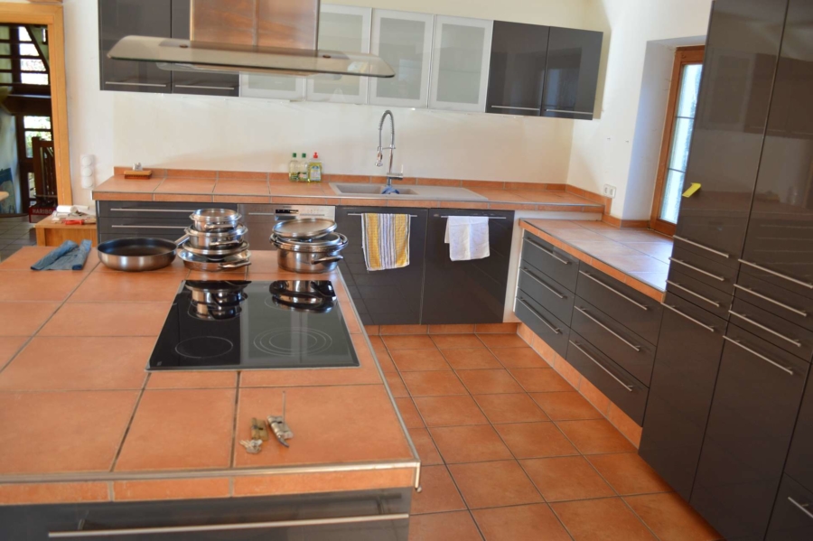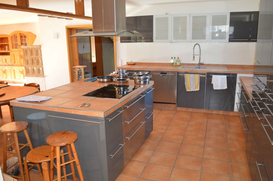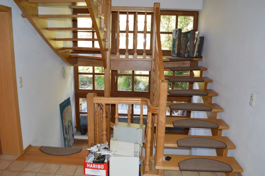 Dieses wunderbare Wohnhaus wurde 1988 in Massivbauweise errichtet. Es befindet sich in absolut gepflegtem Zustand und sucht in Qualität und Ausstattung seinesgleichen. Die Bäder des Hauses wurden erst vor kurzem komplett moderniesiert. So wurde im Bad des Erdgeschosses ein toller Whirlpool eingebaut, der zur Entspannung einlädt. In den Decken eingebaute LED Lichter sorgen für helle aber nicht aufdringliche Beleuchtung. Die Fliesen und Bodenbeläge wurden in mediteranem Stil gehalten. Im Kaufpreis enthalten ist eine hochmoderne große Einbauküche mit Kochinsel. In dieser Küche kochen zu dürfen, ein Traum! Angrenzend findet man einen großen offenen Wohn-/ Essbereich, mit direktem Zugang zur großen Terrasse. Zusätzlich zur Bodenheizung sorgt ein toller Kachelofen bei Bedarf für behagliche Wärme. Ein Schlafzimmer ist im Erdgeschoss ebenfalls zu finden. Das Haus ist sehr hell und lichtdurchflutet. Das Badezimmer im Obergeschoss wurde ebenfalls komplett erneuert. Hier wurde neben einer normalen Badewanne eine große bodengleiche Dusche installiert. Zudem findet man im Obergeschoss zwei Schlafzimmer und einen Speicher.