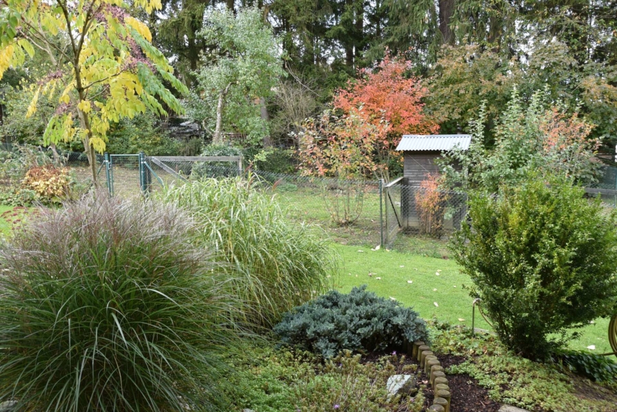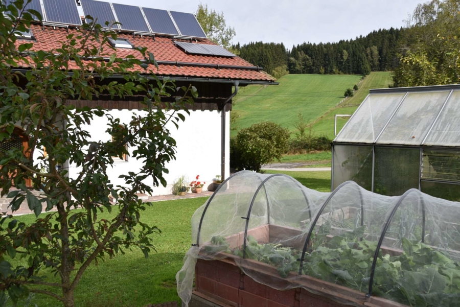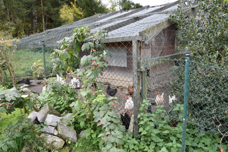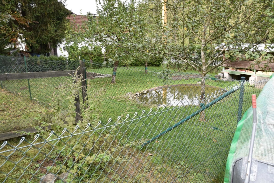 Der große Garten ist ein wahrer Traum. Es stehen gepflegte Wiesenflächen, Beete und Gemüsegärten zur Verfügung. Separat abgeteilt werden derzeit Hühner und Enten gehalten und ein zusätzlicher Schwimmteich für das Federvieh wurde angelegt.