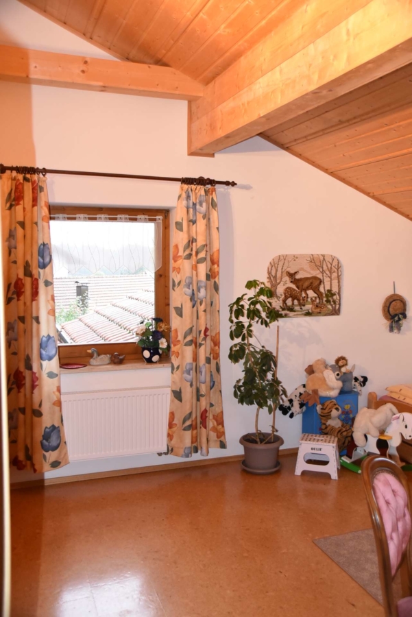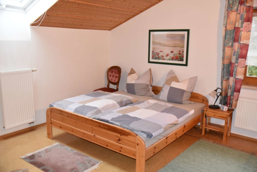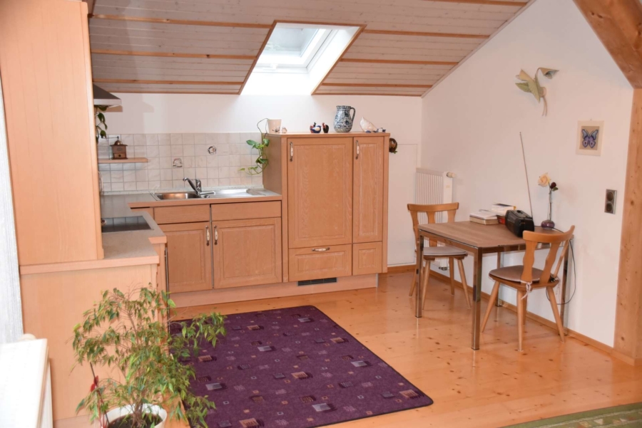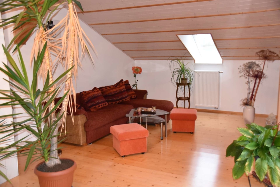 Das Obergeschoß wurde 2002 neu und hochwertig ausgebaut. Hier stehen neben drei Schlafzimmern ein großer Wohn-/ Essbereich zur Verfügung mit offener Küche, welche ebenfalls zum Angebot gehört. Die Räume sind hier bis zum Dachgiebel ausgebaut, was den Räumen eine besondere Atmosphäre verleiht.