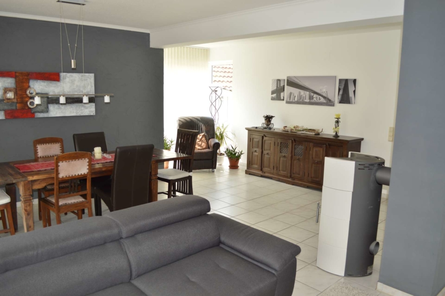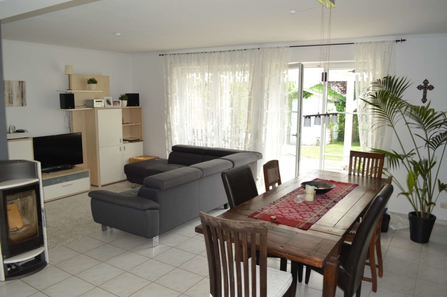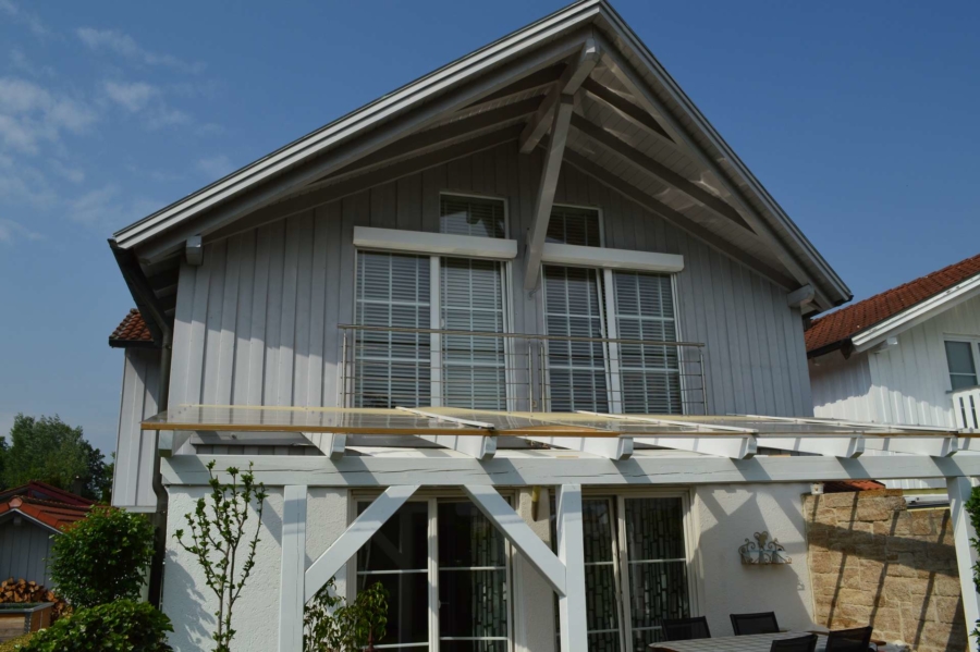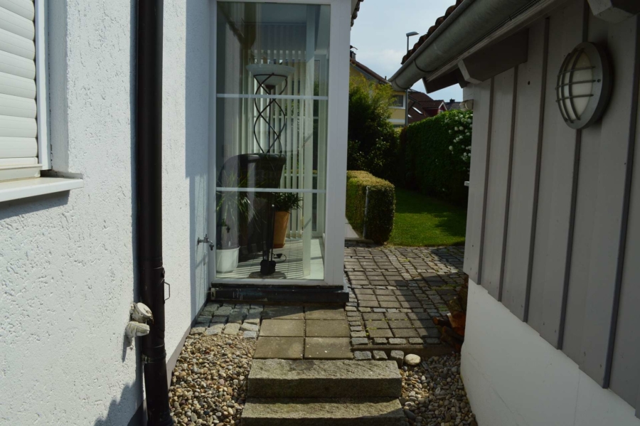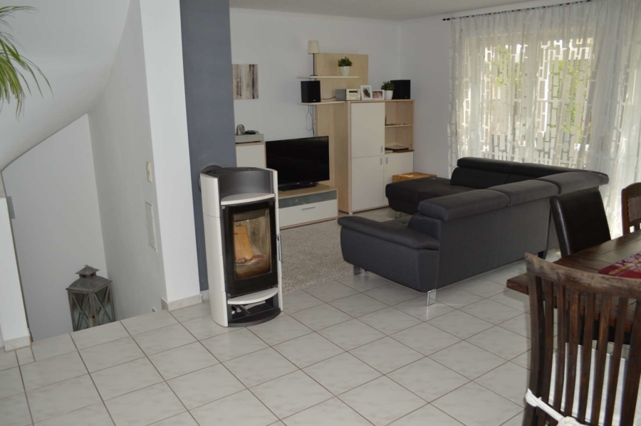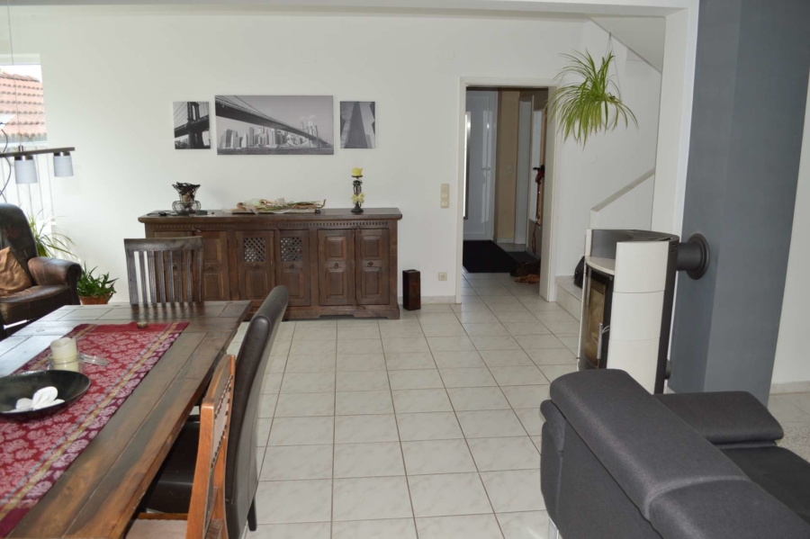 Es ist äusserst gepflegt und wurde im Laufe der Jahre stets modernisiert. So wurden im Jahre 2005 die Fenster durch hochwertige Kunststofffenster mit Rollläden ersetzt. Eine hochwertige Landhausküche wurde 2004 eingebaut. Diese befindet sich ebenfalls in tadellosem Zustand und ist im Kaufpreis enthalten. Durch die großen Fensterflächen sind alle Räume besonders hell und lichtdurchflutet. Im Erdgeschoss und Badezimmer im Obergeschoss befindet sich eine Fussbodenheizung. Im Wohnbereich ist zudem ein hochwertiger Schwedenofen installiert, der bei Bedarf für gemütliche Wärme sorgt. Vom Wohnzimmer aus erreichen Sie über die Terrassentüre die neu gebaute, mit Glasdach überdachte und nach Süden ausgerichtete Sonnenterrasse.