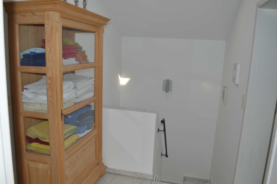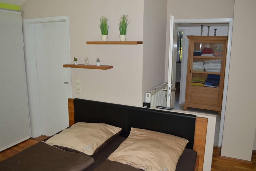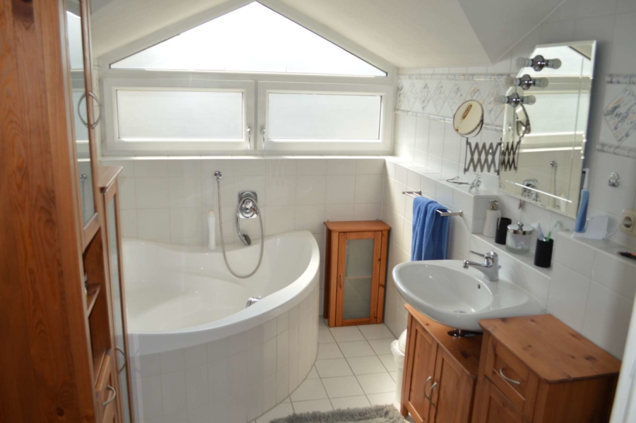 Zwei großzügige Schlafräume befinden sich im Obergeschoss. Das eine davon hat zu beiden Seiten hin einen großen begehbaren Kleiderschrank. Eine ebenfalls große, bis zum Dach gezogene Fensterfläche läßt viel Licht in diesen wunderbaren Raum dringen. Angrenzend erreicht man das Badezimmer mit Dusche und Wanne. Der zweite Schlafraum ist nach Norden hin ausgerichtet und ist ebenfalls äußerst hell.