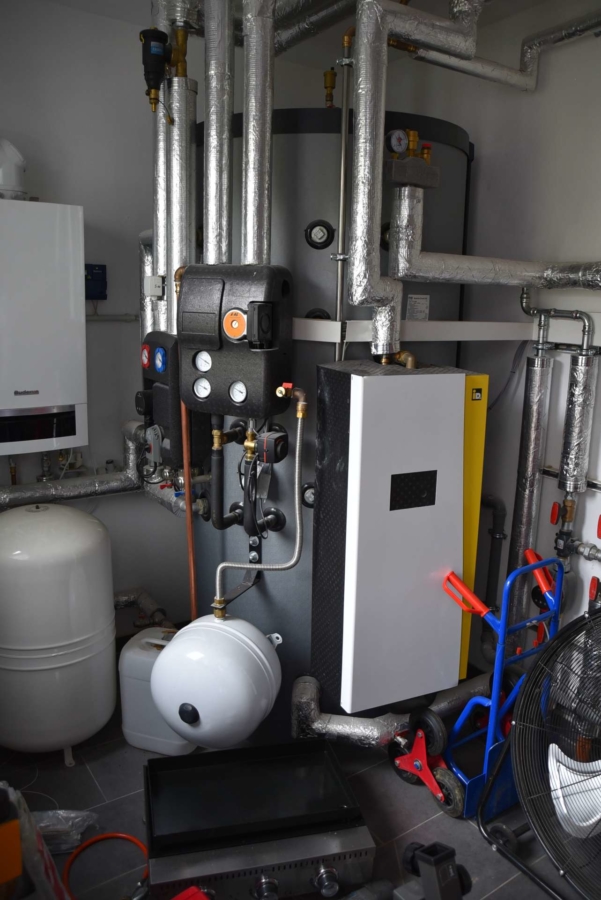 Heizungsart: Gas/Holz/tlw. Solar – Fußbodenheizung und Kachelofen