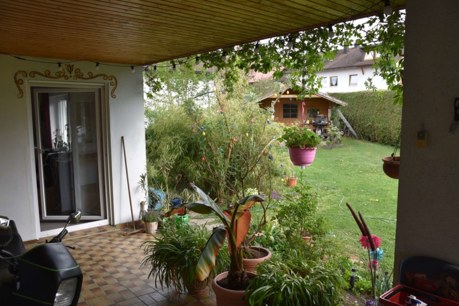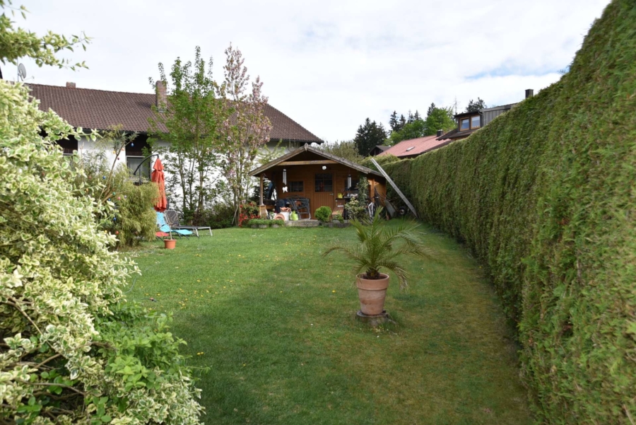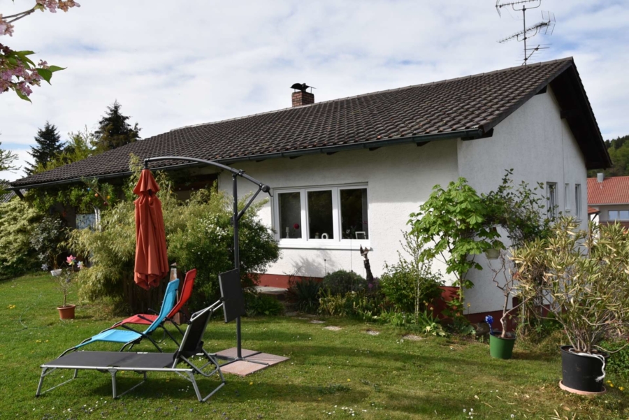 Mit dem Bau des Gebäudes wurde 1975 begonnen, 1979 wurde es fertiggestellt und erstmals bezogen. Im Haus sind zwei Wohnungen untergebracht. Die Wohnung im Erdgeschoss bietet mit fünf Zimmern ausreichend Platz für eine größere Familie. Badezimmer und WC sind getrennt. Über einen breiten Flur erreicht man die gut eingeteilten Zimmer. Vom Wohnzimmer aus kann man ebenerdig über eine große Terrasse den schön angelegten Garten begehen, der mit einer dichten Hecke eingefasst ist. Im oberen Teile des Gartens befindet sich noch zusätzlich ein geräumiges Gartenhaus.