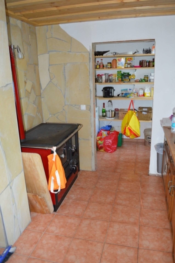 Die Zimmer sind gut geschnitten und wirken sehr hell und freundlich, der helle wintergartenähnliche Ausbau im Wohnzimmer lädt zum Verweilen ein. Von hier aus hat man eine tolle Fernsicht über Wiesen und Felder und eine geniale Aussicht. Bei schönem Wetter kann man die Alpen sehen. Eine ältere Einbauküche ist im Wohnhaus enthalten sowie ein neu angeschaffter Herd mit Backrohr, der mit Holz betrieben wird. Der Keller des Hauses befindet sich im Rohbauzustand und kann entweder als Einliegerwohnung mit eigenem Zugang von aussen oder als Keller des Wohnhauses genutzt werden.