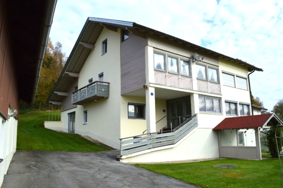 Das Haus liegt sehr ruhig in einem kleinen, weitläufigem Weiler, am Waldrand. Die Aussicht ist sehr schön. Das Hanggrundstück ist äußert sonnenverwöhnt. Die Zufahrtsstraße zum Haus ist sehr wenig befahren.