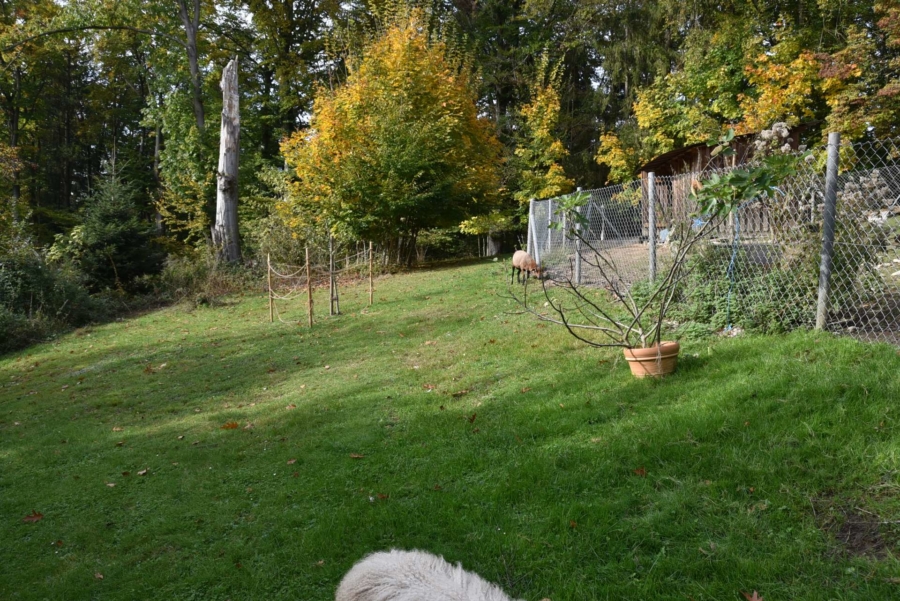 Es gibt mehrere sonnige Terrassen auf mit gemütlichen Sitzgelegenheiten. Hier kann man die tolle Umgebung vollends genießen. Es gibt neben einem Hundehäuschen noch ein Stallgebäude, welches auf einer separaten Weidefläche zu finden ist. Die derzeitige Größe der eingezäunten Weidefläche beträgt ca. 1300 m², diese könnte aber noch vergrößert werden.