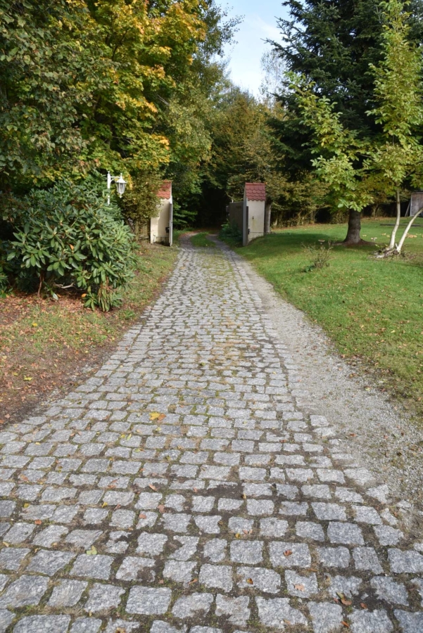 Auf das herrlich gelegene Grundstück gelangt man, nachdem das elektrische Zufahrtstor geöffnet wird.