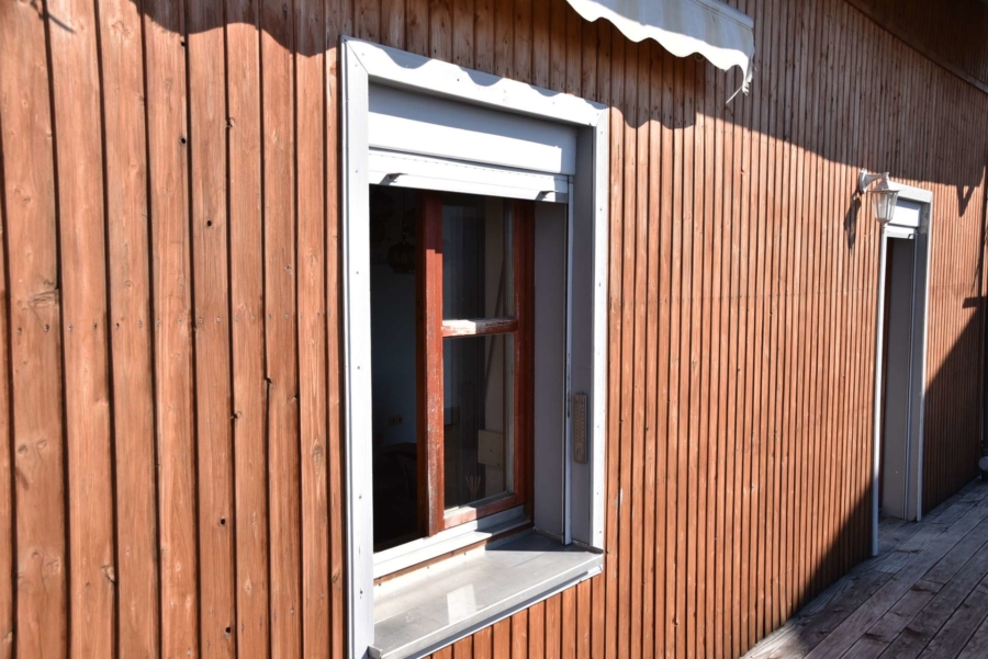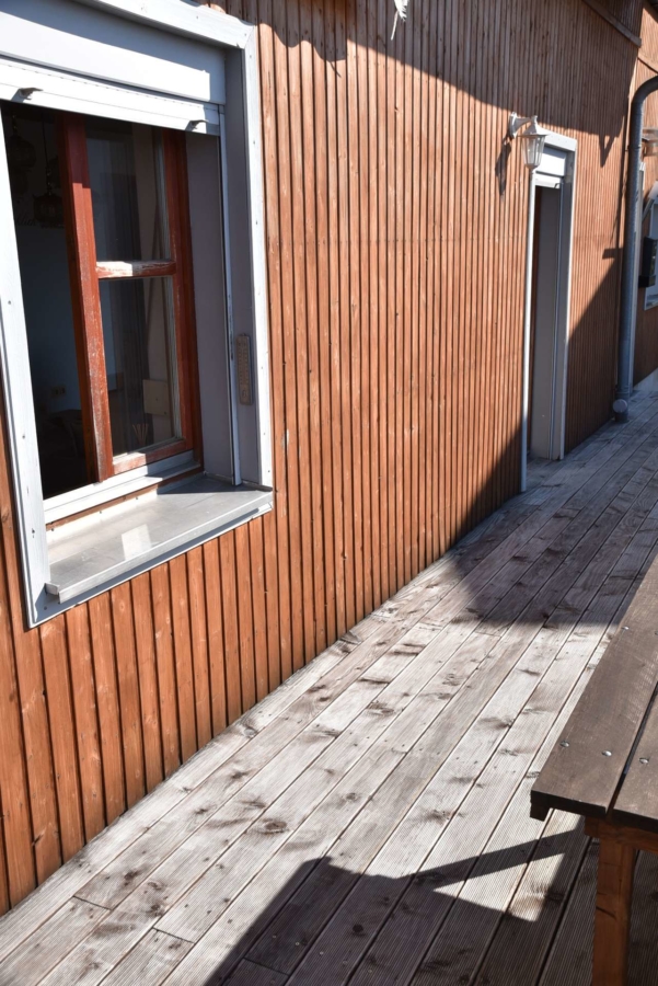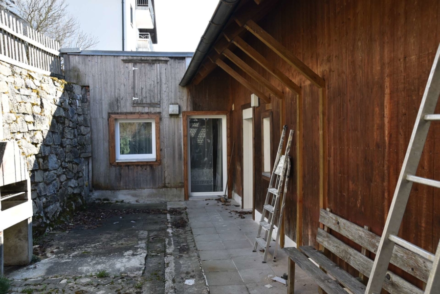 Dach und Mauerwerk ist trocken. Hinter dem Haus ist noch eine kleine Hinterhofterrasse.