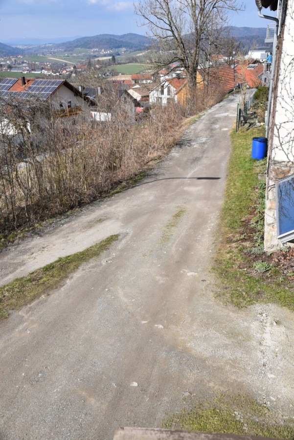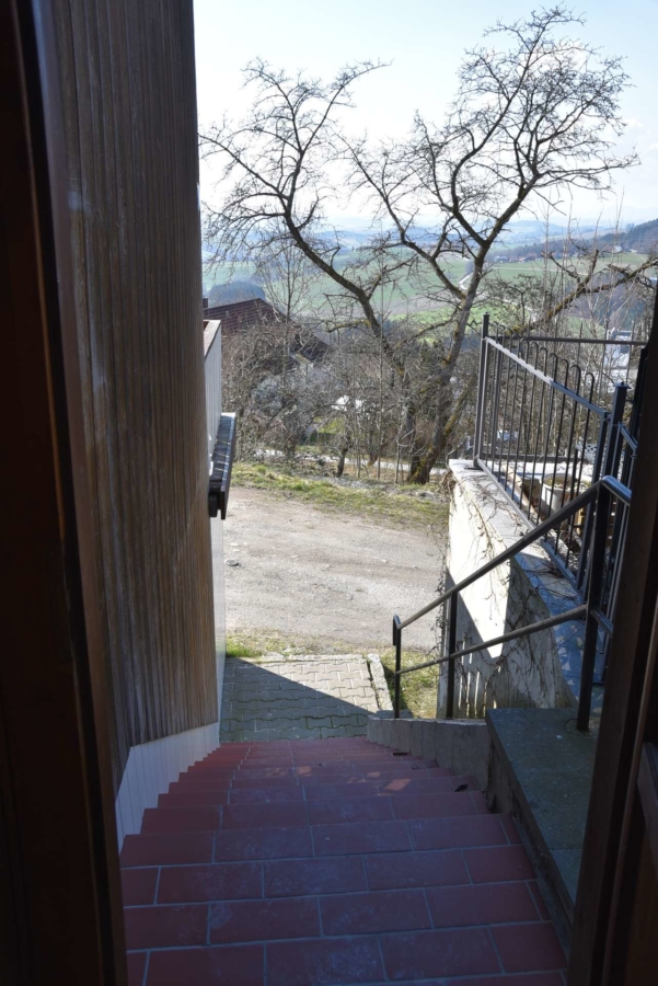 Das Baujahr ist leider nicht mehr genau bekannt, es wird vermutet, daß es in den fünfziger Jahren gebaut wurde. Auf der rechten Seite des Gebäudes grenzt direkt das Nachbarhaus an, links ist der Zugang zum Haus. Von der nach Süd Westen ausgerichteten Terrasse kann man den herrlichen Fernblick genießen. Die Zufahrtsstraße ist öffentlich, Parkmöglichkeiten sind hier gegeben.