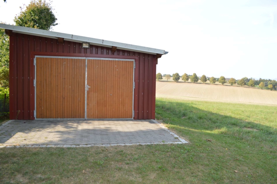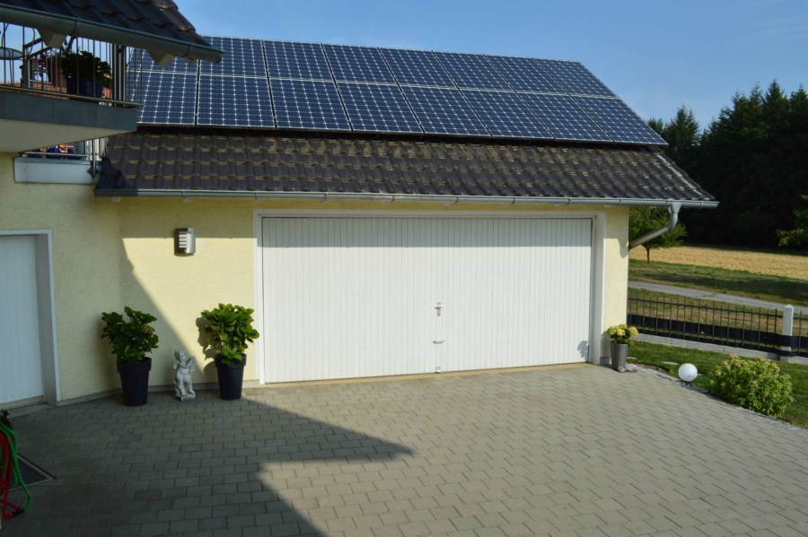 installiert. Die monatliche Einspeisevergütung beträgt derzeit € 59,00. Großzügige Doppelgarage mit Werkstattraum, 2013 wurde eine Halle mit ca. 50 m² errichtet, die derzeit als Werkstatt und Garage sowie für weitere Gerätschaften dient.