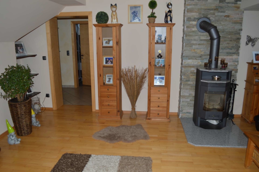 (Wohnzimmer EG, Esszimmer OG), ein Kaminofen (im Wohnzimmer OG).
