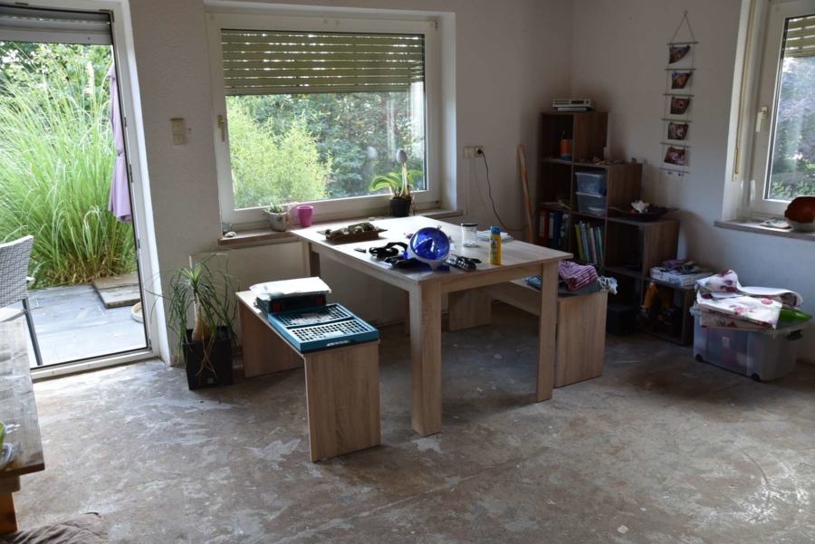 Mit der Renovierung im EG wurde bereits begonnen, es müssen noch die Bodenbeläge verlegt werden. Die Elektrik des Hauses wurde bereits komplett erneuert.