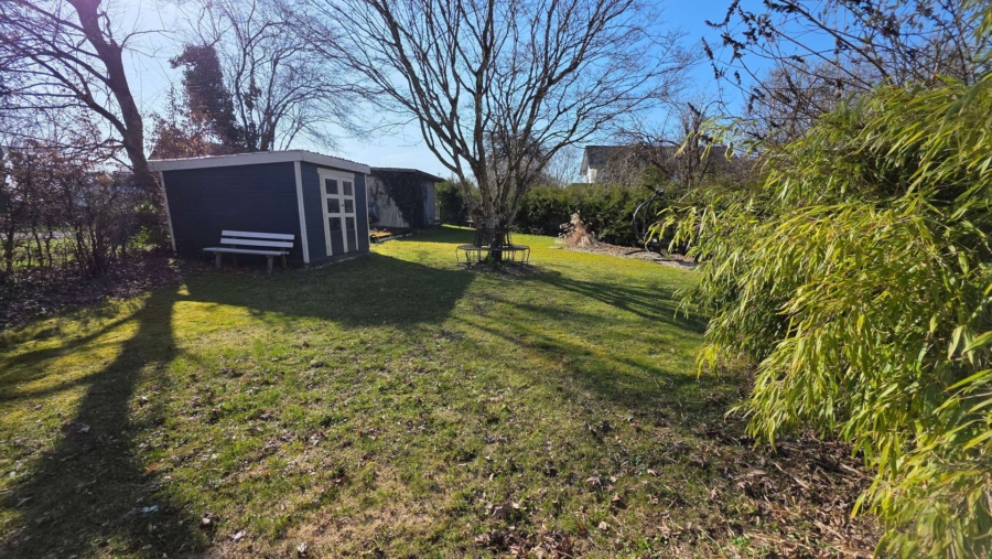 Der liebevoll gestaltete Garten selbst ist ein kleines Paradies: weitläufig, eben, altbaumbestanden, ein praktisches Gartenhaus, genug Platz für Pool, Trampolin, Hochbeete… einfach Leben im Grünen. Zwei Garagen und mindestens ein Außenstellplatz vor der Garage sorgen für ausreichend Parkmöglichkeiten und runden das Paket ab.