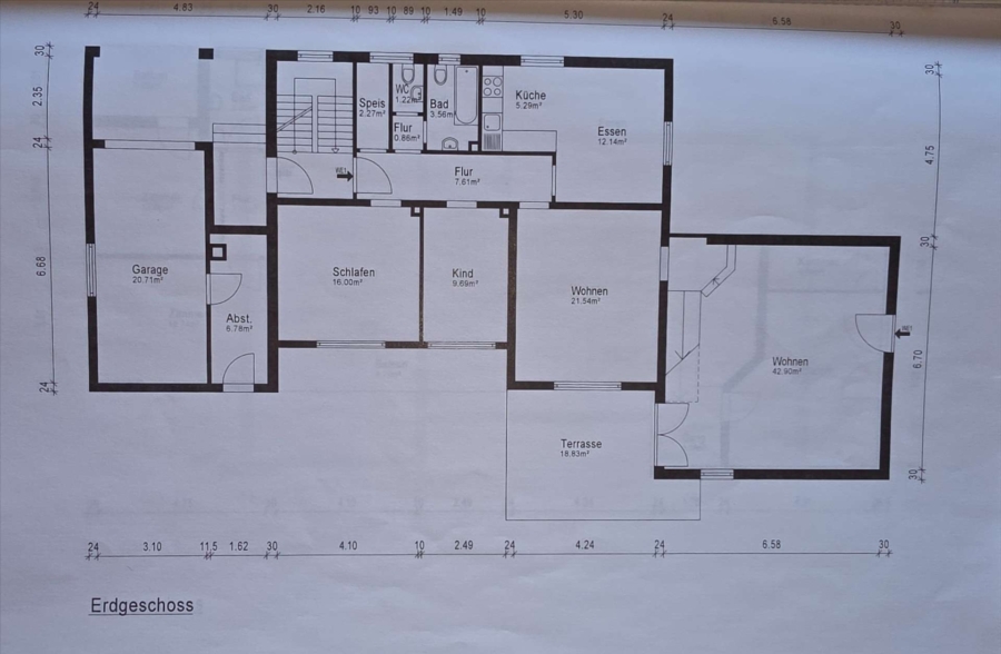 1. Wohneinheit EG und Anbau: 3 Schlafzimmer, 1 Wohnzimmer, 1 Esszimmer, 1 Küche, 1 Bad, 1 Gäste-WC, 1 Abstellraum