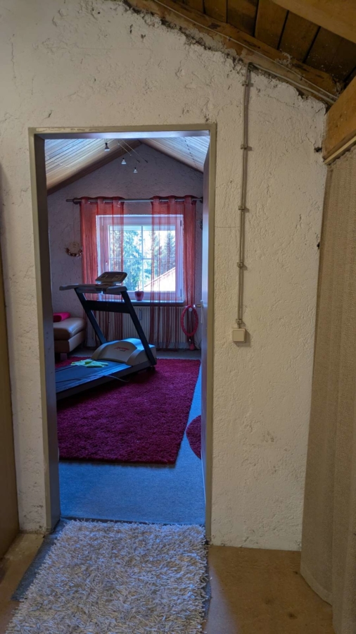Das Obergeschoss, derzeit vermietet, verfügt über 120 m² Wohnfläche und besticht durch eine großzügige Aufteilung. Es umfasst ein Wohnzimmer mit Anschluss für einen Schwedenofen, der in der kalten Jahreszeit zusätzlich zur Öl-Zentralheizung für angenehme Wärme sorgt, ein Badezimmer und eine Küche. Weitere 5 Zimmer bieten ausreichend Platz für individuelle Bedürfnisse. Eine großzügige Terrasse und ein Balkon setzen den perfekten Rahmen, um die idyllische Umgebung und den malerischen Blick ins Grüne zu genießen.