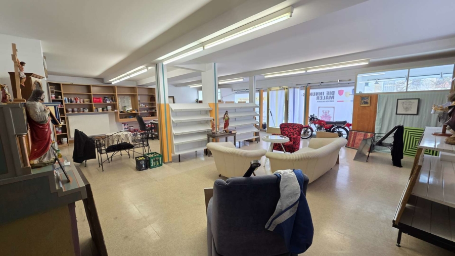 - Große, lichtdurchflutete Gewerbefläche (ca. 220 m²) mit separatem Eingang, Schaufensterfront, eigener Küche, WC und Büroraum – ideal für Werkstatt, Praxis, Büro, Laden oder Gastronomie