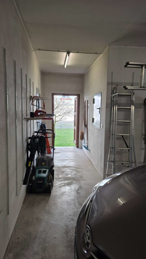 - Große Garage für ein Auto und weitere Werkstatt-/Lagerfläche