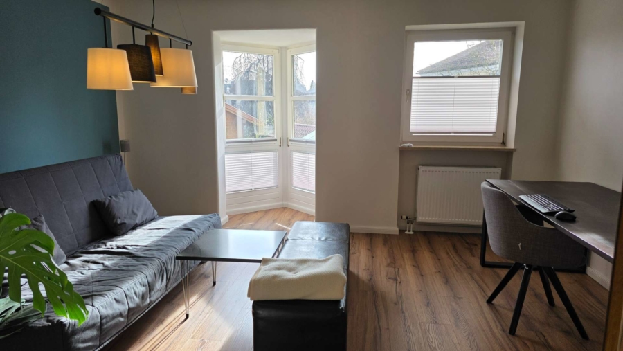 Das Zimmer auf der linken Seite verfügt über einen modernen Erker, der natürliches Licht flutet und den Raum noch einladender macht, gut geeignet als Lesezimmer oder zum Home-Office.