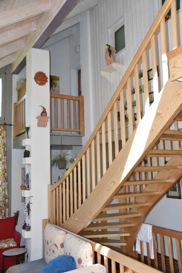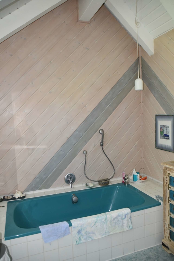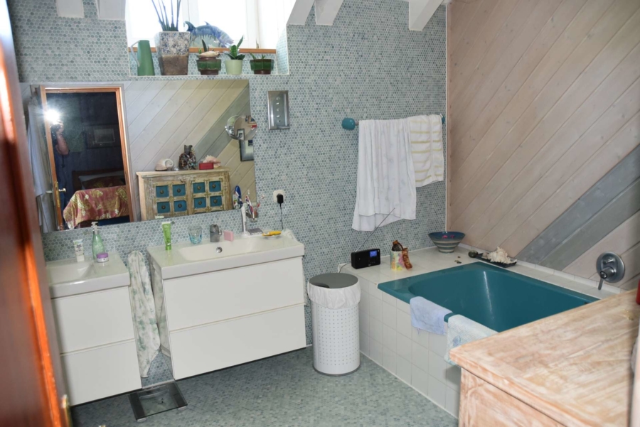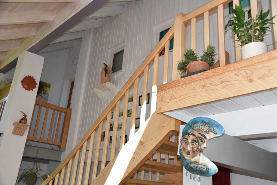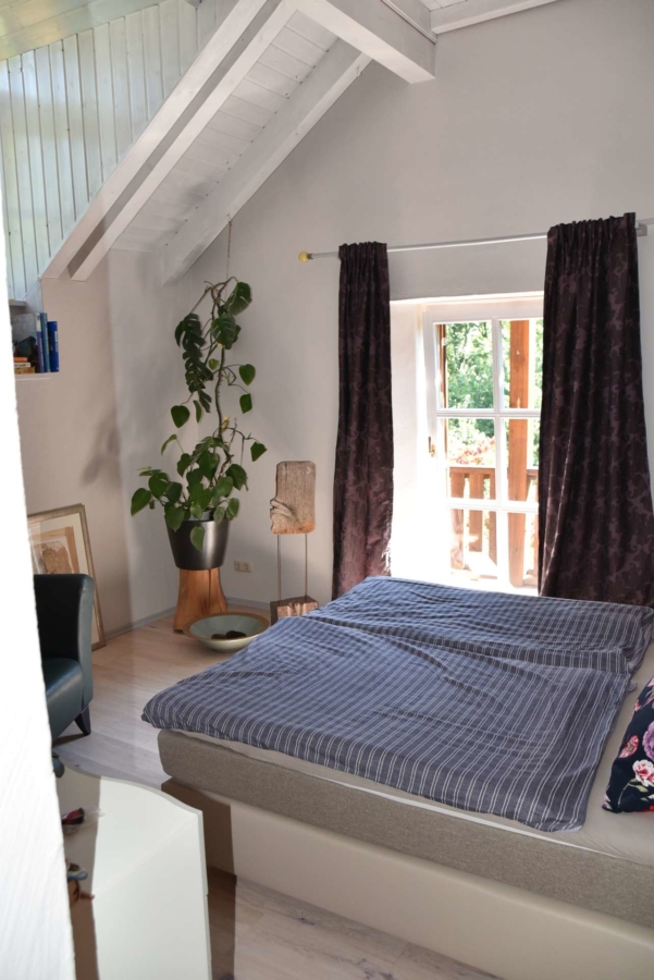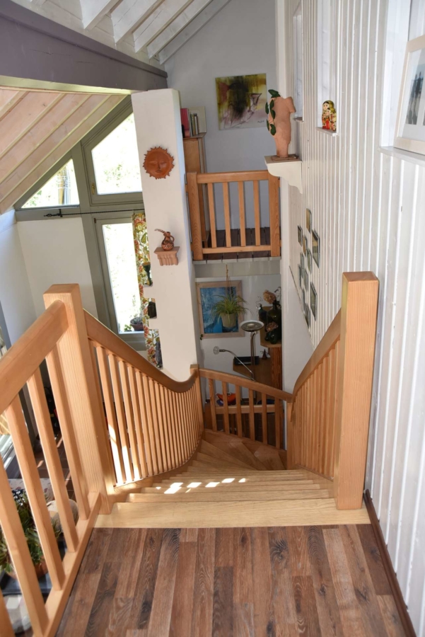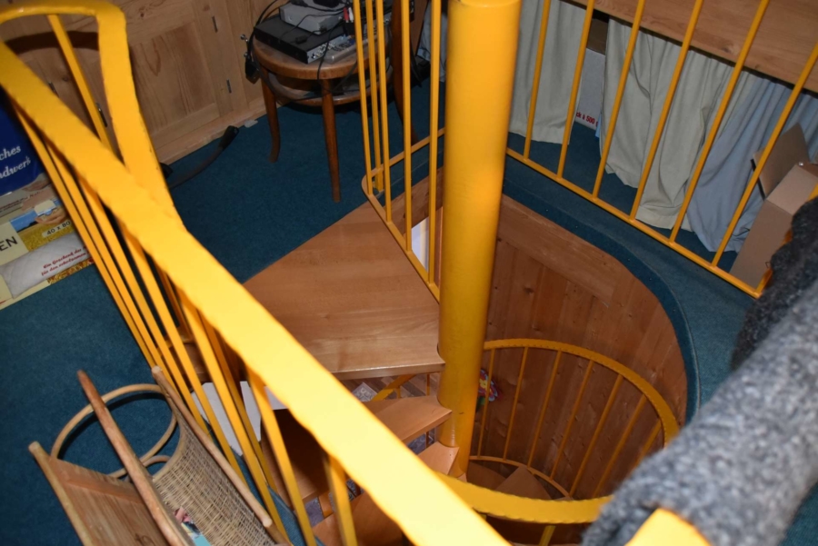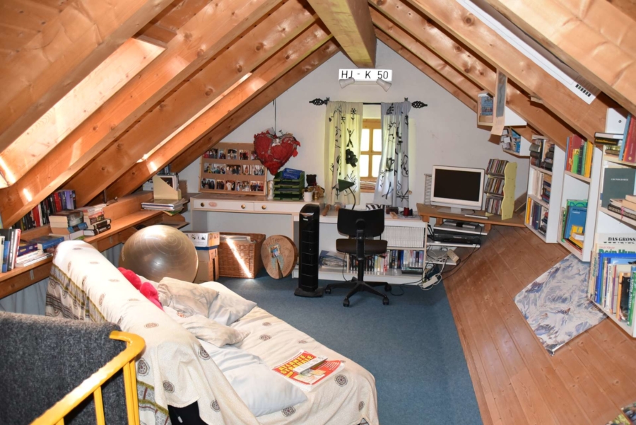 Eine Wendeltreppe führt in das ausgebaute Dachgeschoss. Dort ist noch ein zusätzliches Lesezimmer oder Kinderzimmer vorhanden ist.