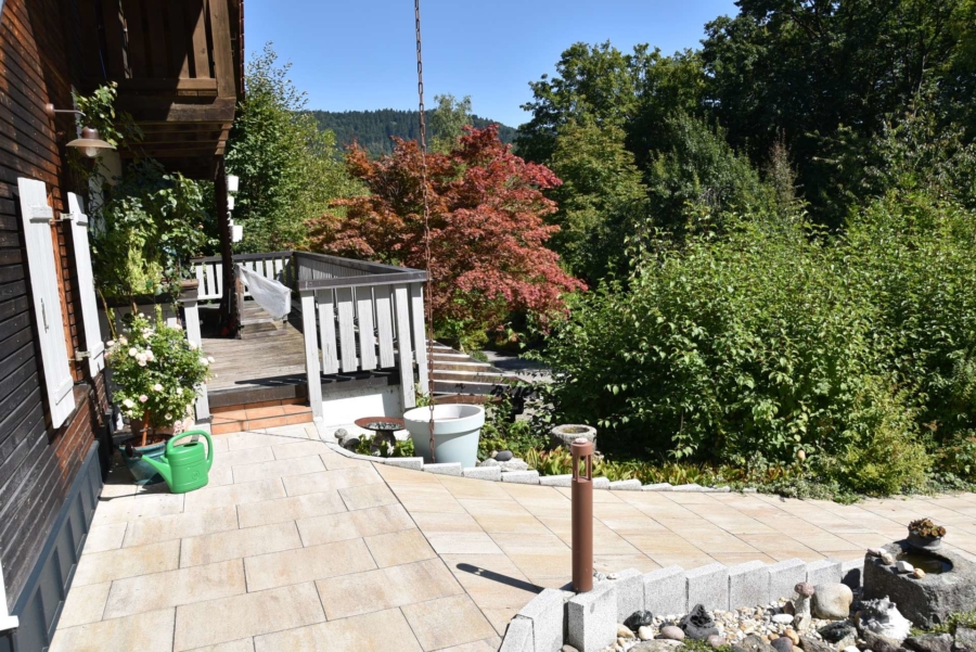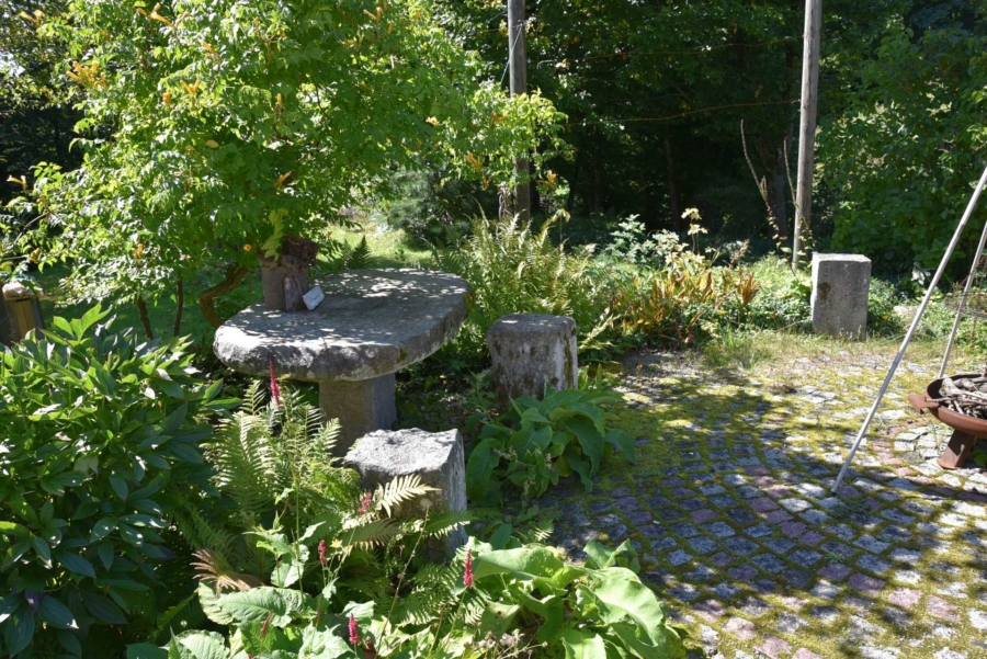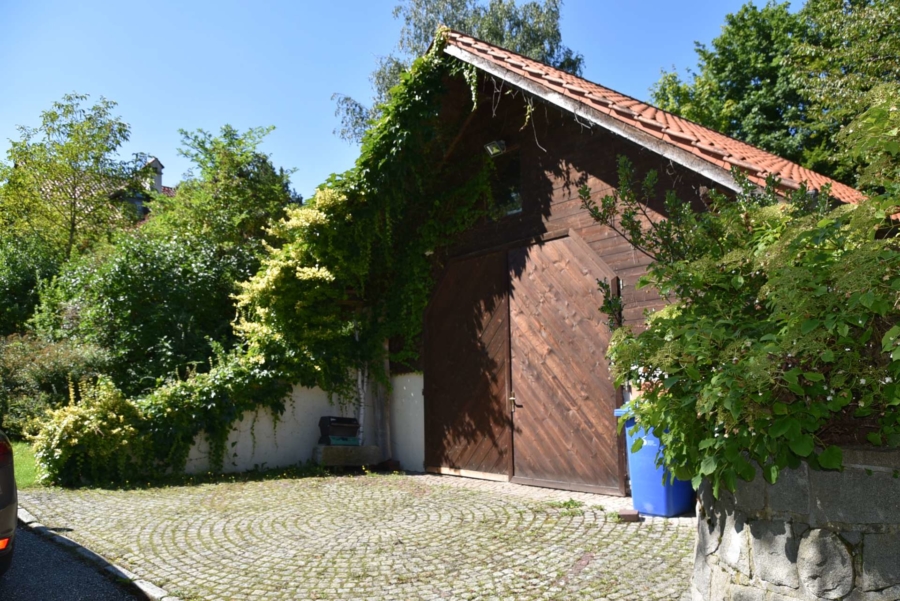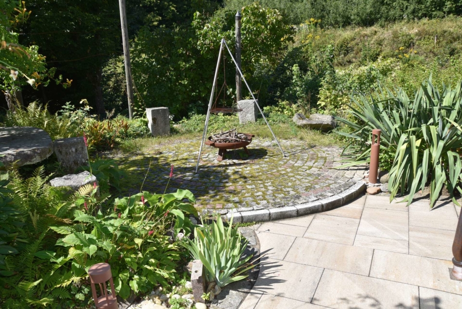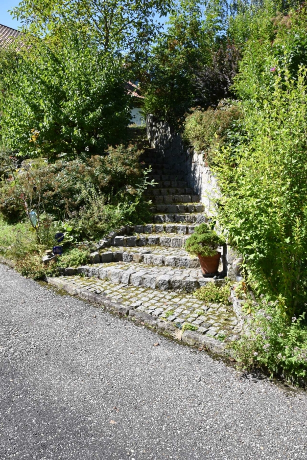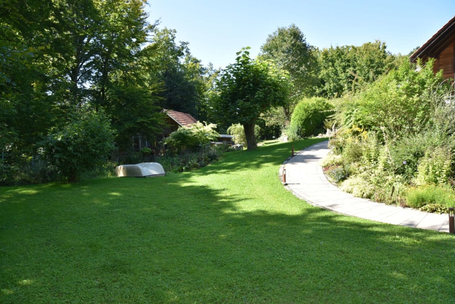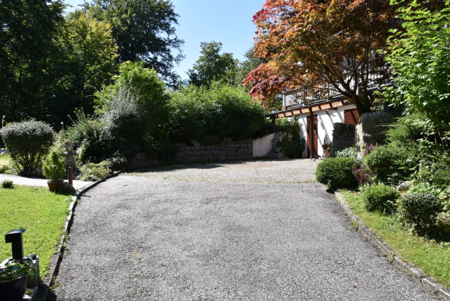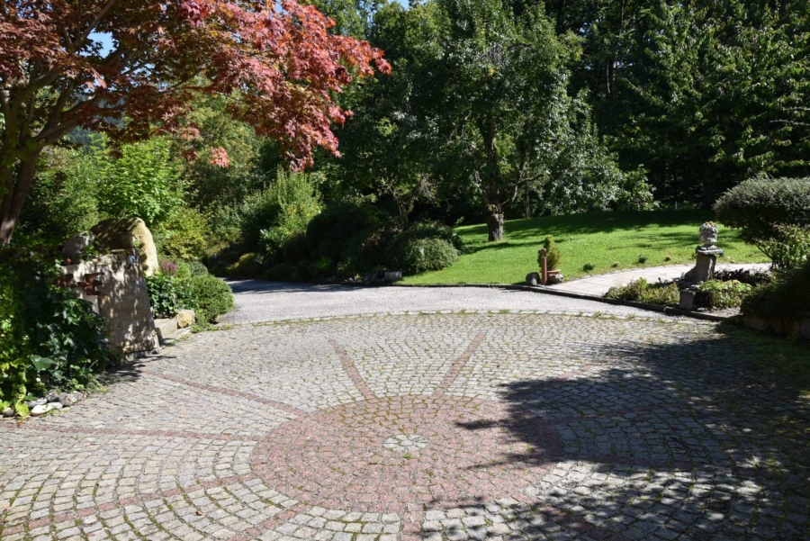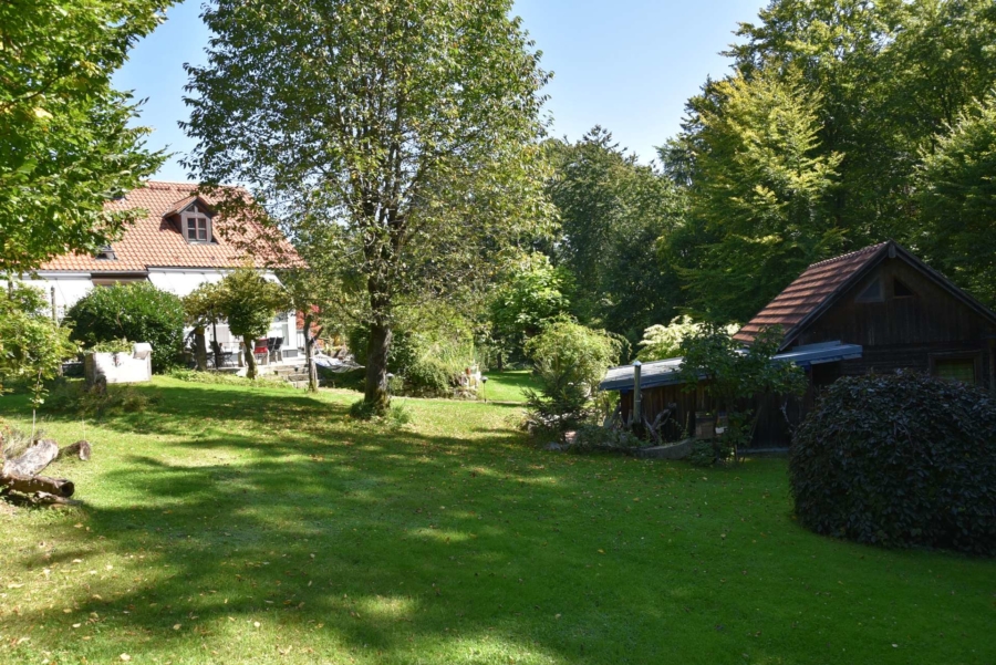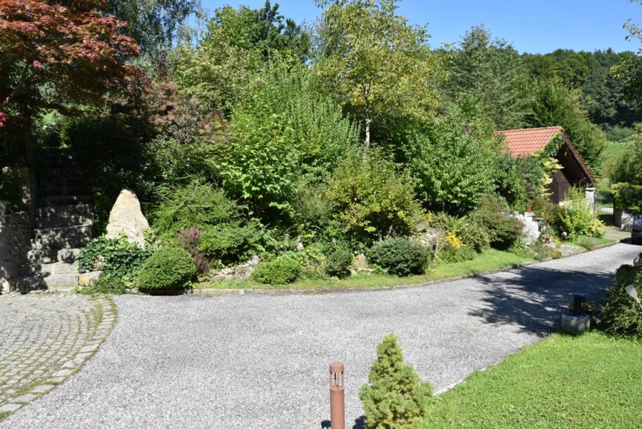 Der Garten des insgesamt knapp 4000 m² großen Areals ist praktisch nicht einsehbar und bietet seinen Bewohnern ein wahres Paradies. Wunderschön angelegte Wege mit schwerem Granitpflaster, ein toller Baumbestand und Wiesen runden dieses Bild ab. Die Zufahrt und Hauszugänge sind mit ebenfalls Bayerwald-Granit gepflastert.