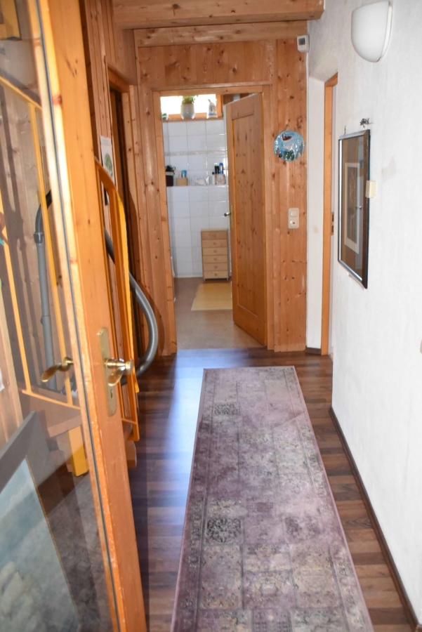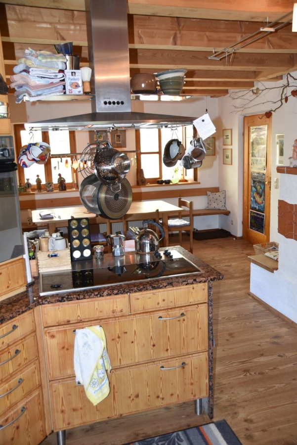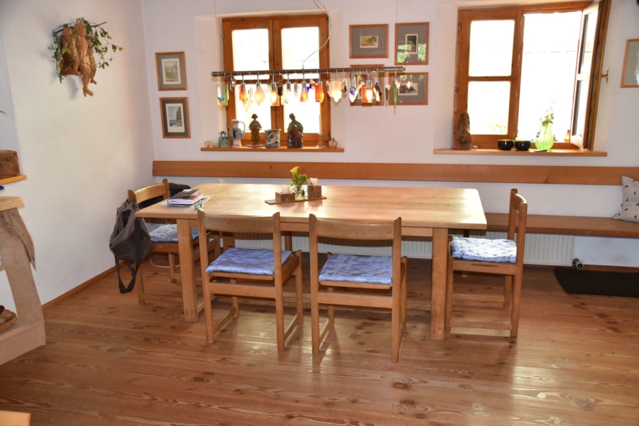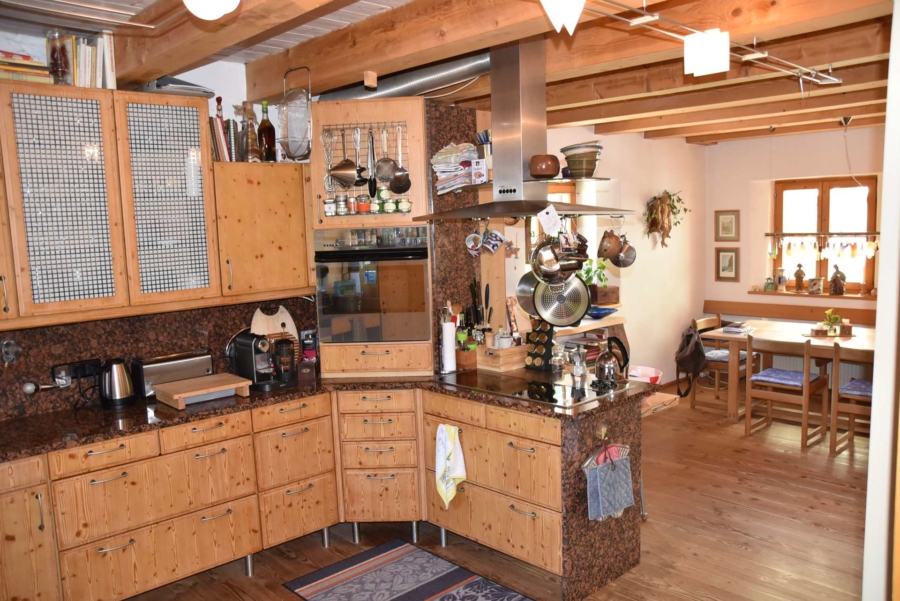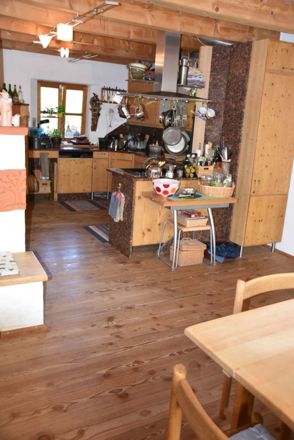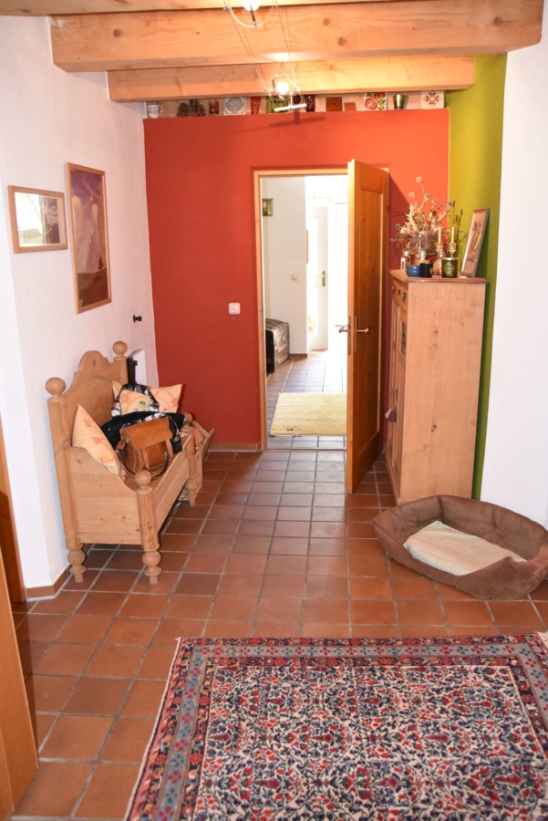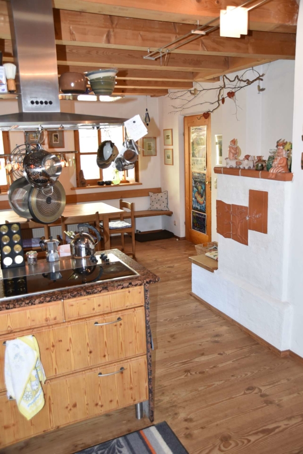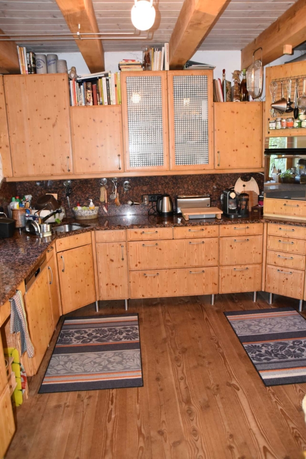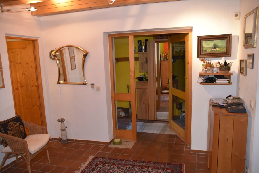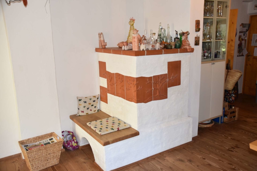 Holzvertäfelungen und Rauhputz finden sich im Haus wieder. Die Türstöcke-/und Blätter sind aus Naturholz. Die Sprossenfenster sind mit Isolierglas gearbeitet. Die innenliegenden Fensterbänke sind ebenfalls in Massivholzausführung.