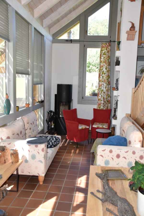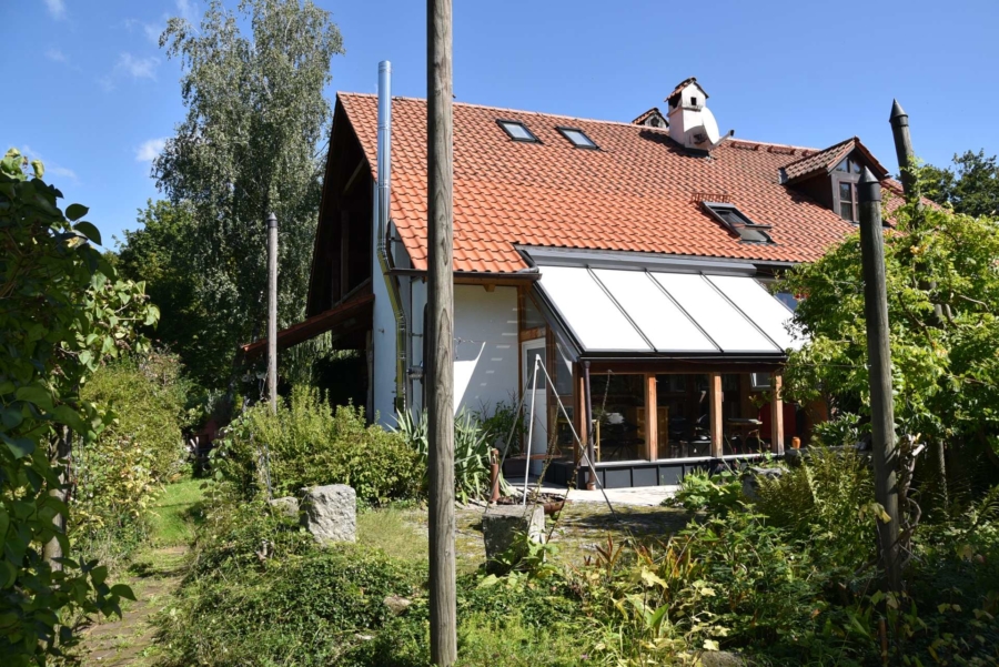 Es wurde im ganzen Haus auf Liebe zum Detail geachtet. Der Garten ist traumhaft angelegt und bietet viele Sitzmöglichkeiten zum Entspannen und Genießen der Ruhe. Sie haben die Möglichkeit sich auf der Terrasse, dem Balkon, der Loggia oder bei kälteren Temperaturen im Wintergarten zu entspannen. Dieser wird mit einer Fußbodenheizung beheizt zusätzliche Wärme bietet ein Holzofen. Eine schmucke Gartenhütte, mit Terrasse am Teich mit lädt ebenfalls zum Verweilen ein.