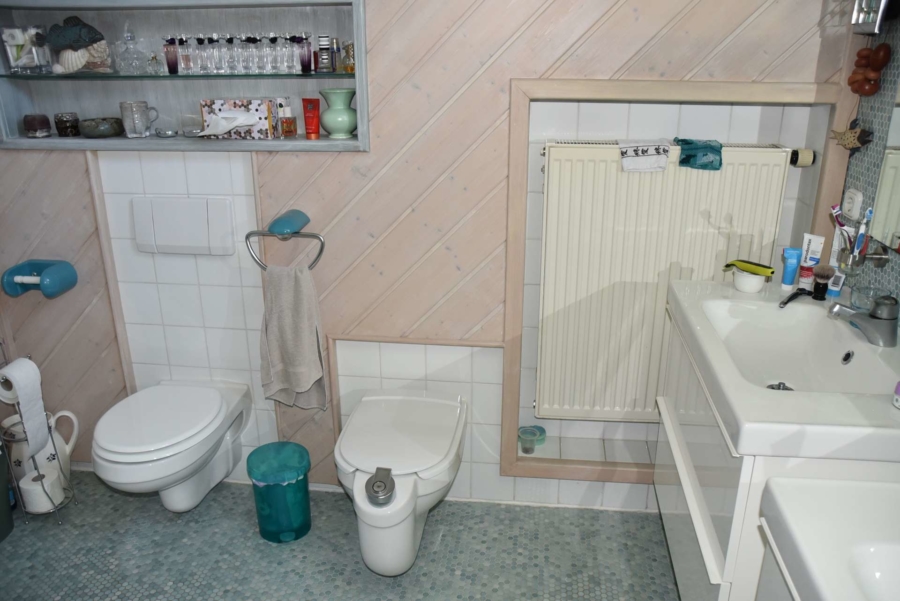 Als Bodenbeläge finden Sie im Haus Parkett, Douglasienkork sowie Terracottafliesen vor. In den Bäder wurde mit Keramik gearbeitet.