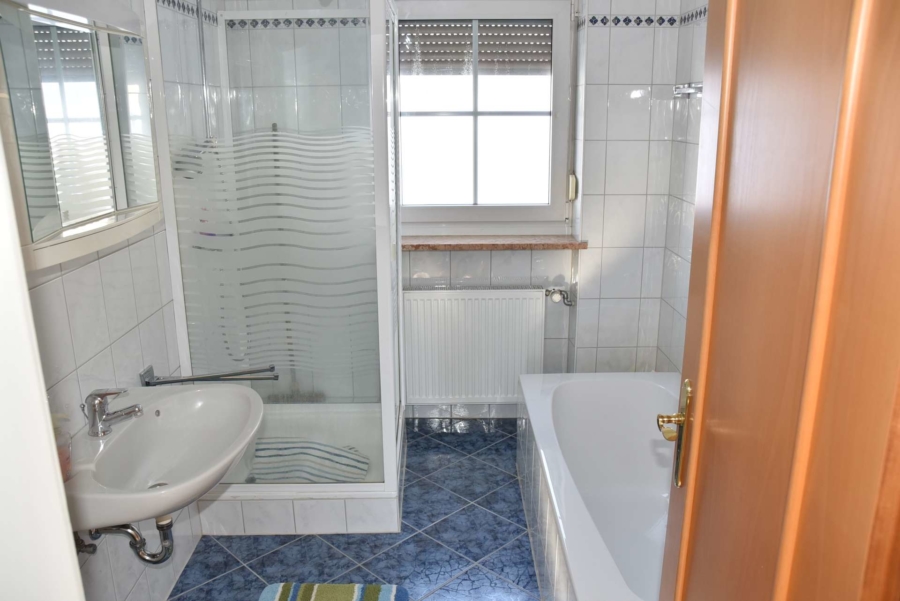 Die beiden jeweils 95 m² großen Wohnungen haben einen identischen Grundriss. Pro Wohnung stehen drei große Schlafzimmer und ein großes Wohnzimmer zur Verfügung. Die Badezimmer sind mit Dusche und Wanne ausgestattet und verfügen zudem über einen Waschmaschinenanschluss. Sowohl das separate WC als auch die geräumigen hellen Badezimmer verfügen über Fenster. Alle Zimmer sind mit Alurolläden ausgestattet. Das gesamte Haus befindet sich in absolut gepflegtem Zustand. Beide Wohnungen wurden seit vielen Jahren von den Eigentümer ausschließlich selbst genutzt. Daher befindet sich die Wohnung im Erdgeschoss nahezu in Neuzustand.